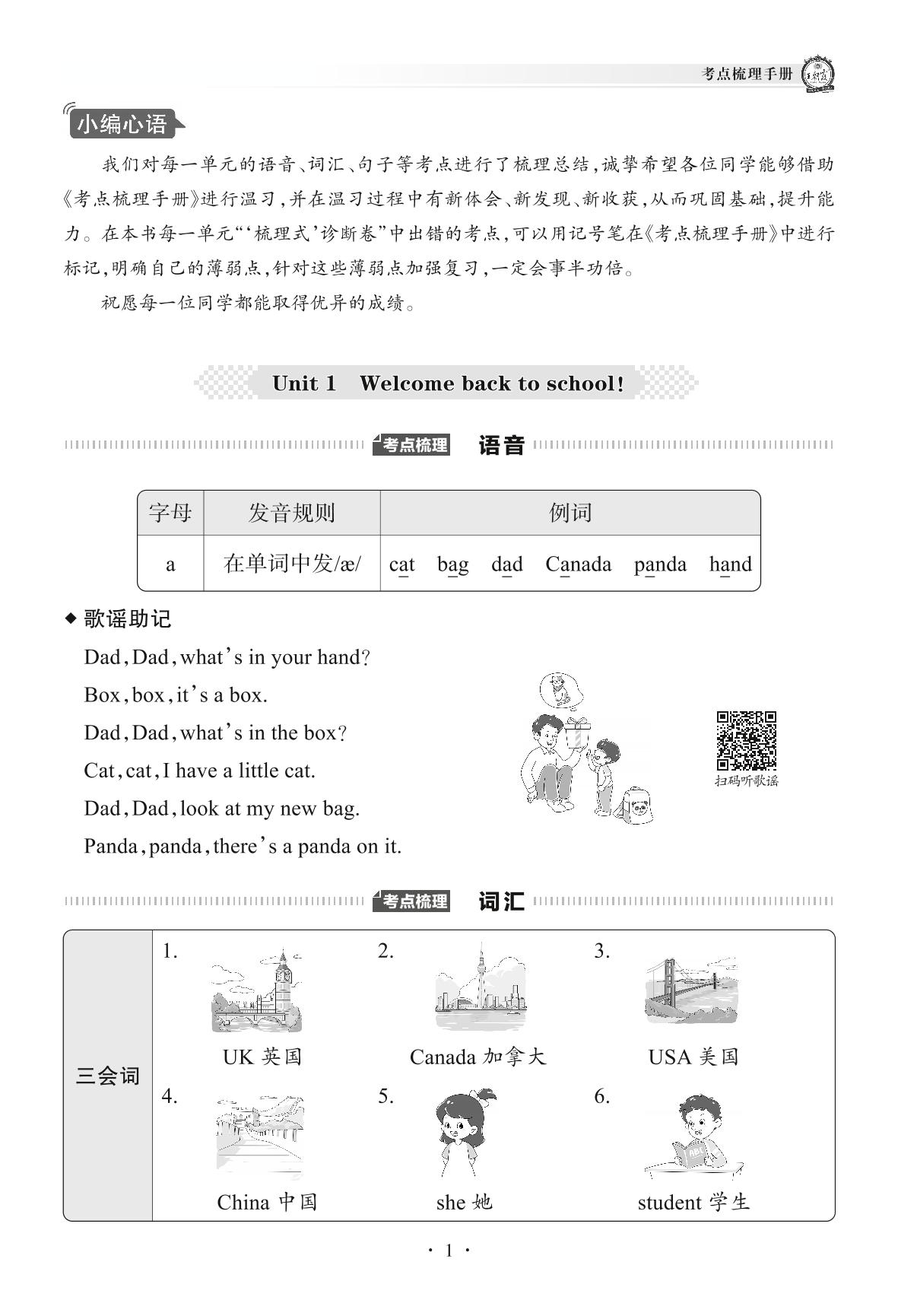 2022下册三年级英语人教PEP版 考点梳理手册——Unit 1 Welcome back to school!