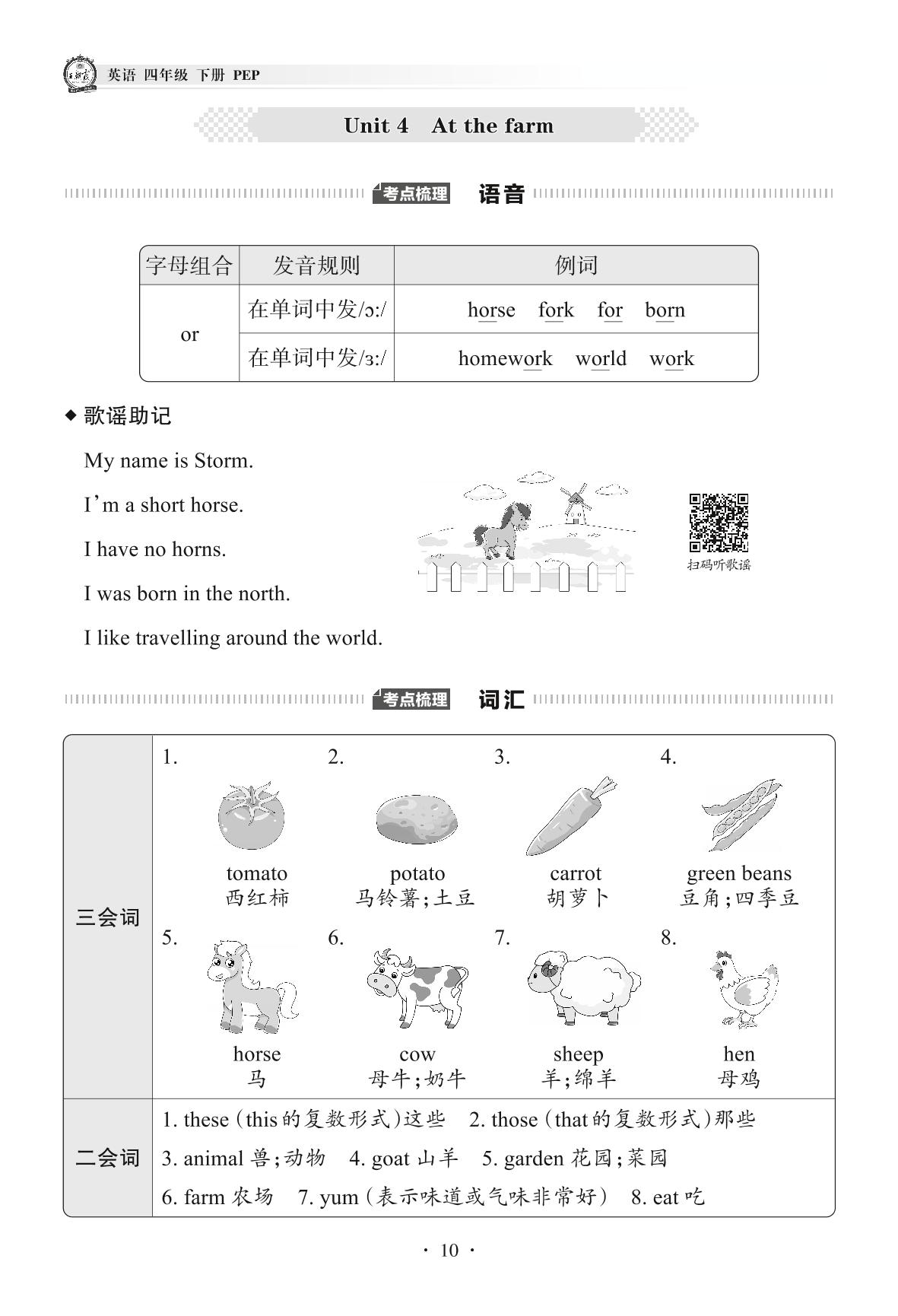 2022下册四年级英语人教PEP版 考点梳理手册——Unit 4 At the farm