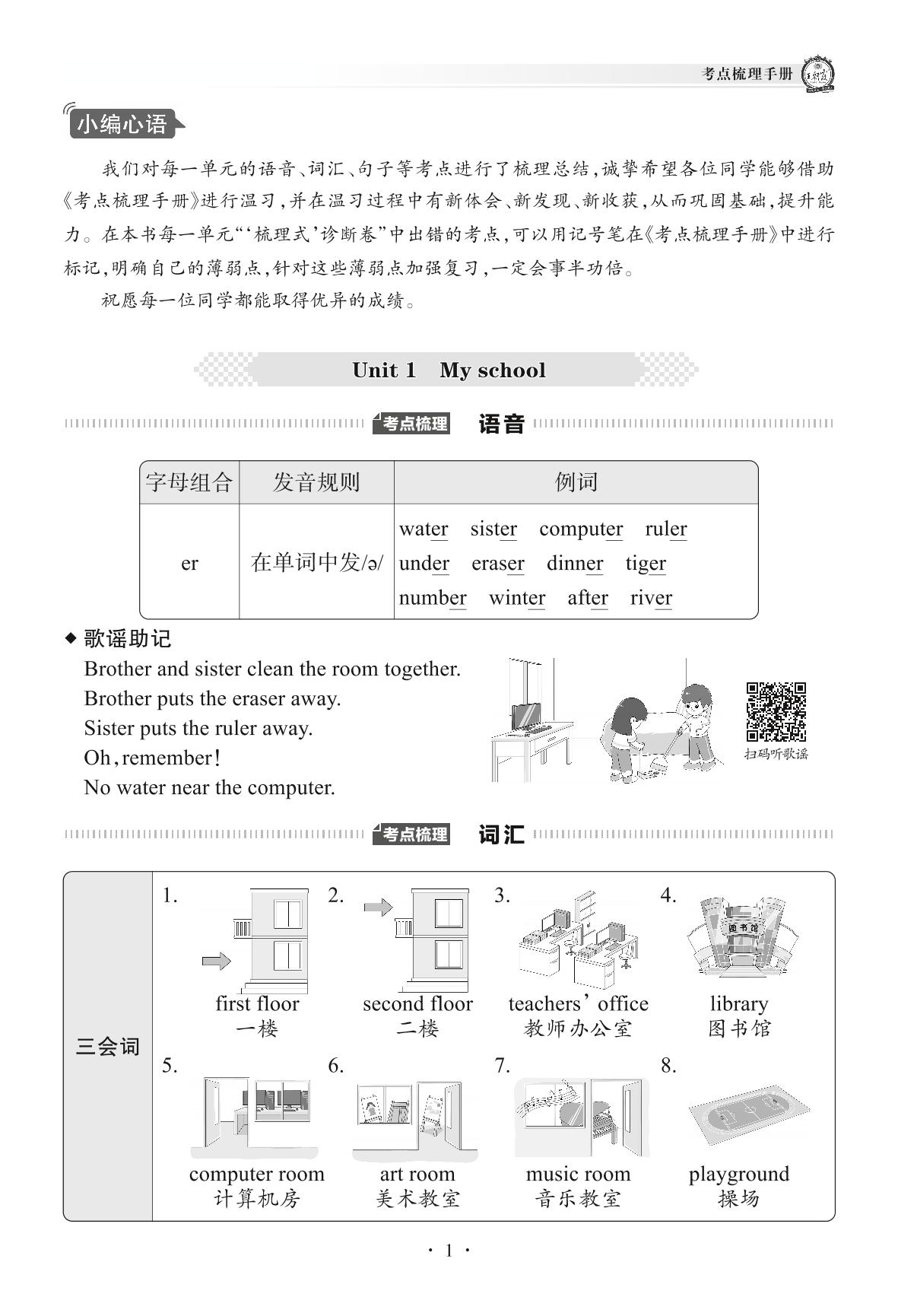 2022下册四年级英语人教PEP版 考点梳理手册——Unit 1 My school