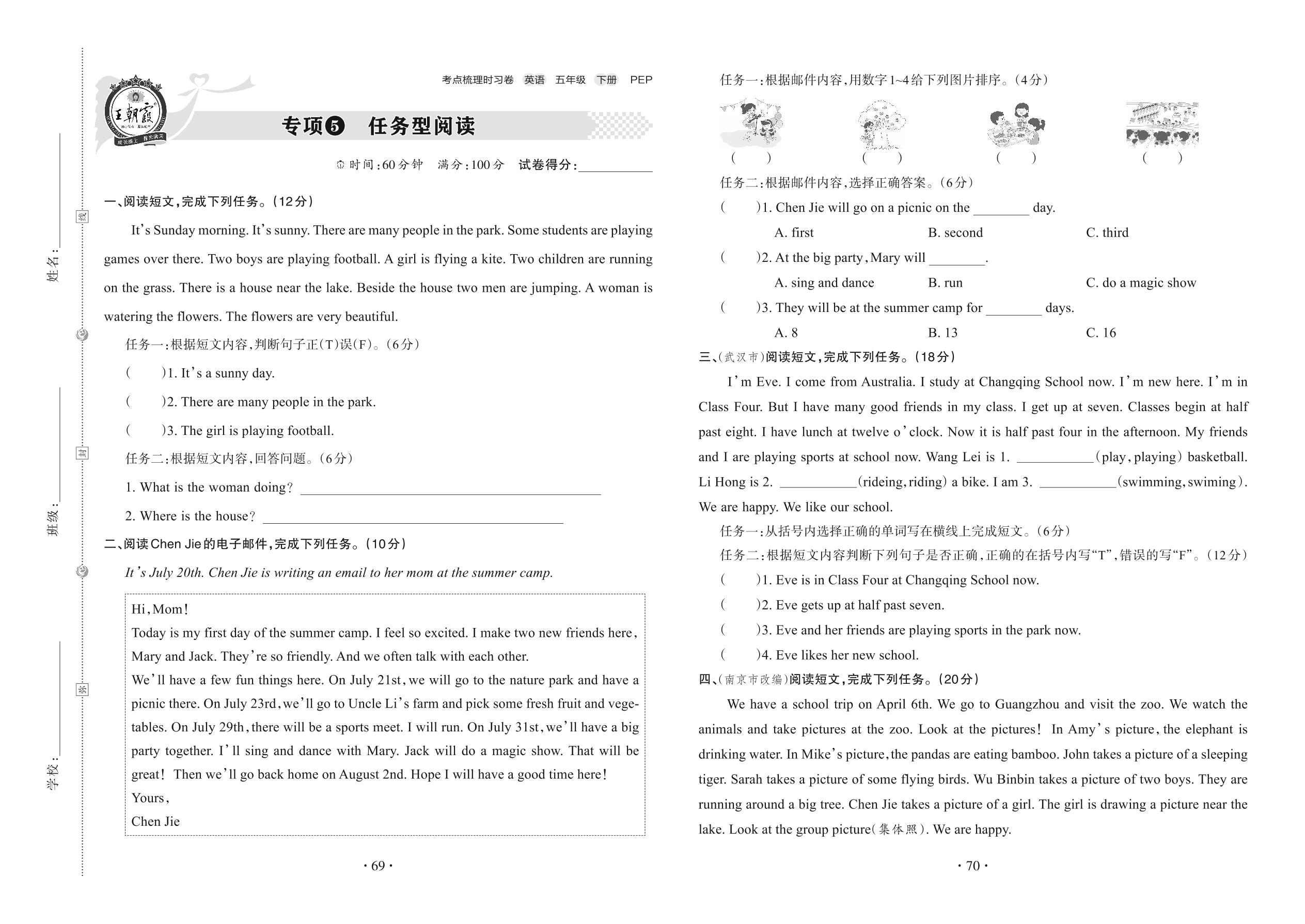 2022下册五年级英语人教PEP版 专项5 任务型阅读