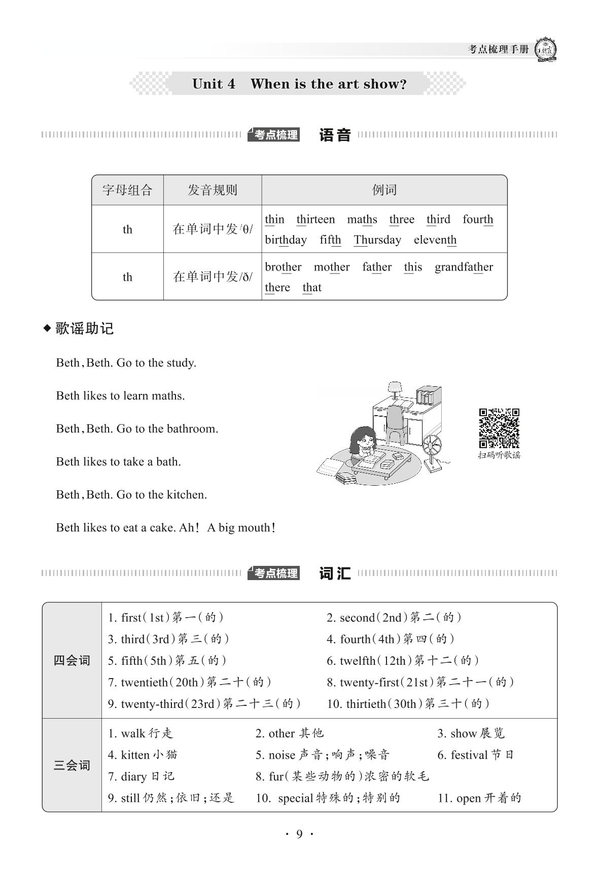 2022下册五年级英语人教PEP版 考点梳理手册——Unit 4 When is the art show?