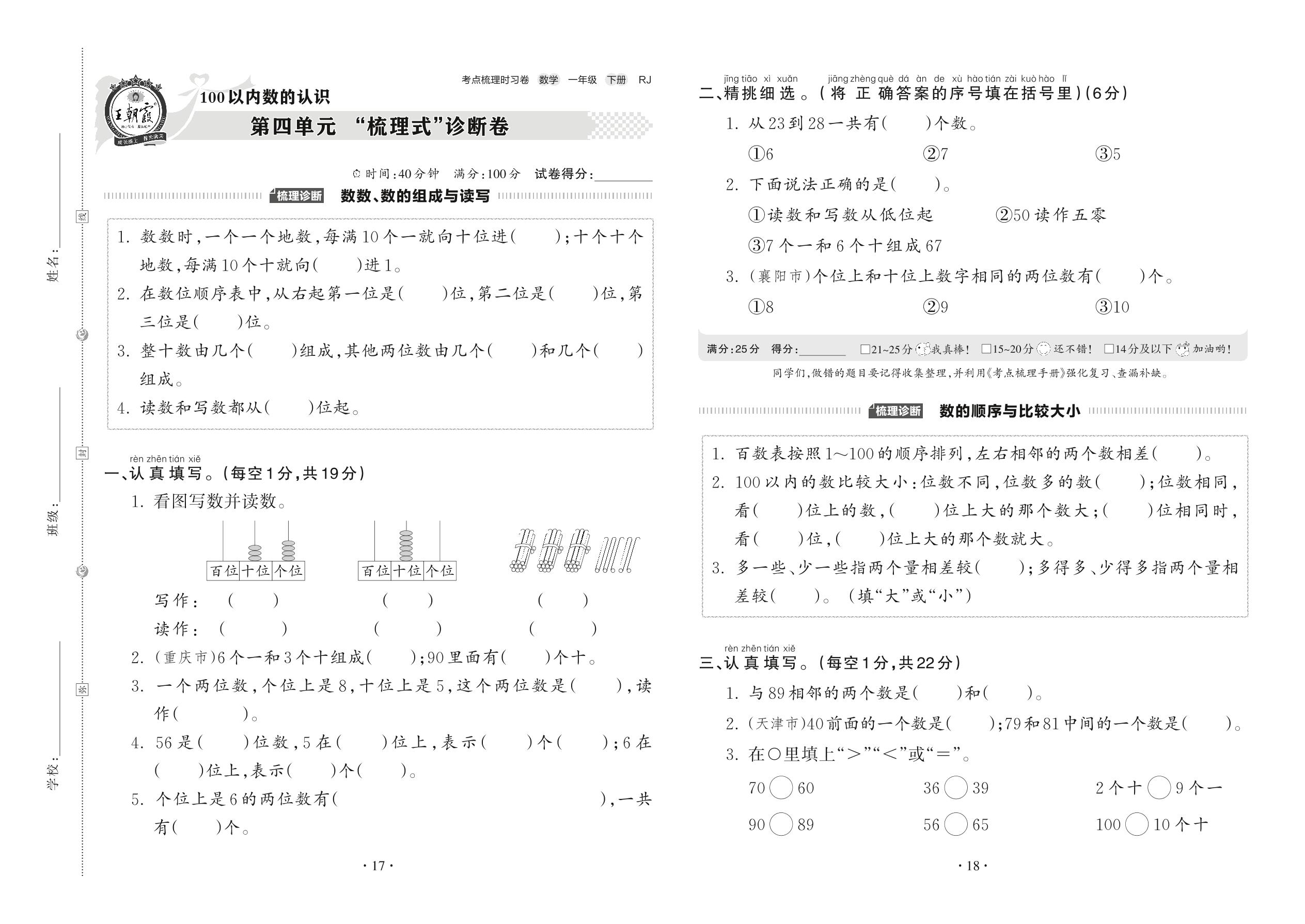 一年级数学人教版下册单元卷