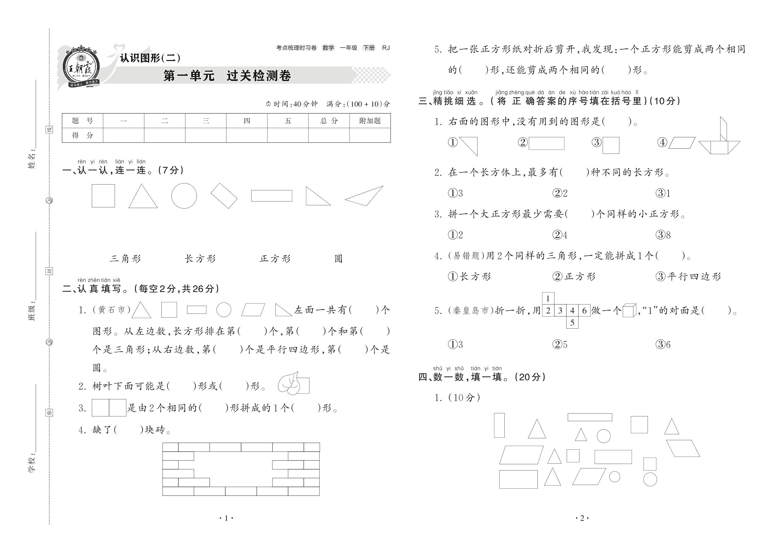 2022下册一年级数学人教版 第一单元 过关检测卷