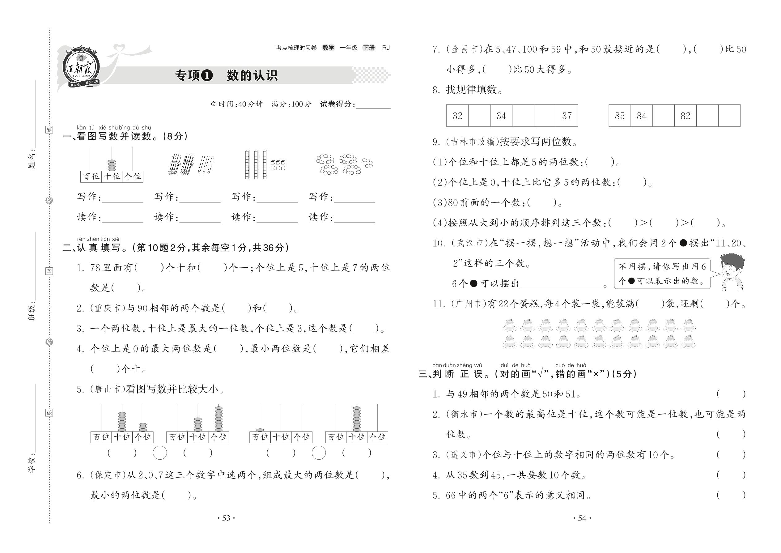 一年级数学人教版下册专项卷