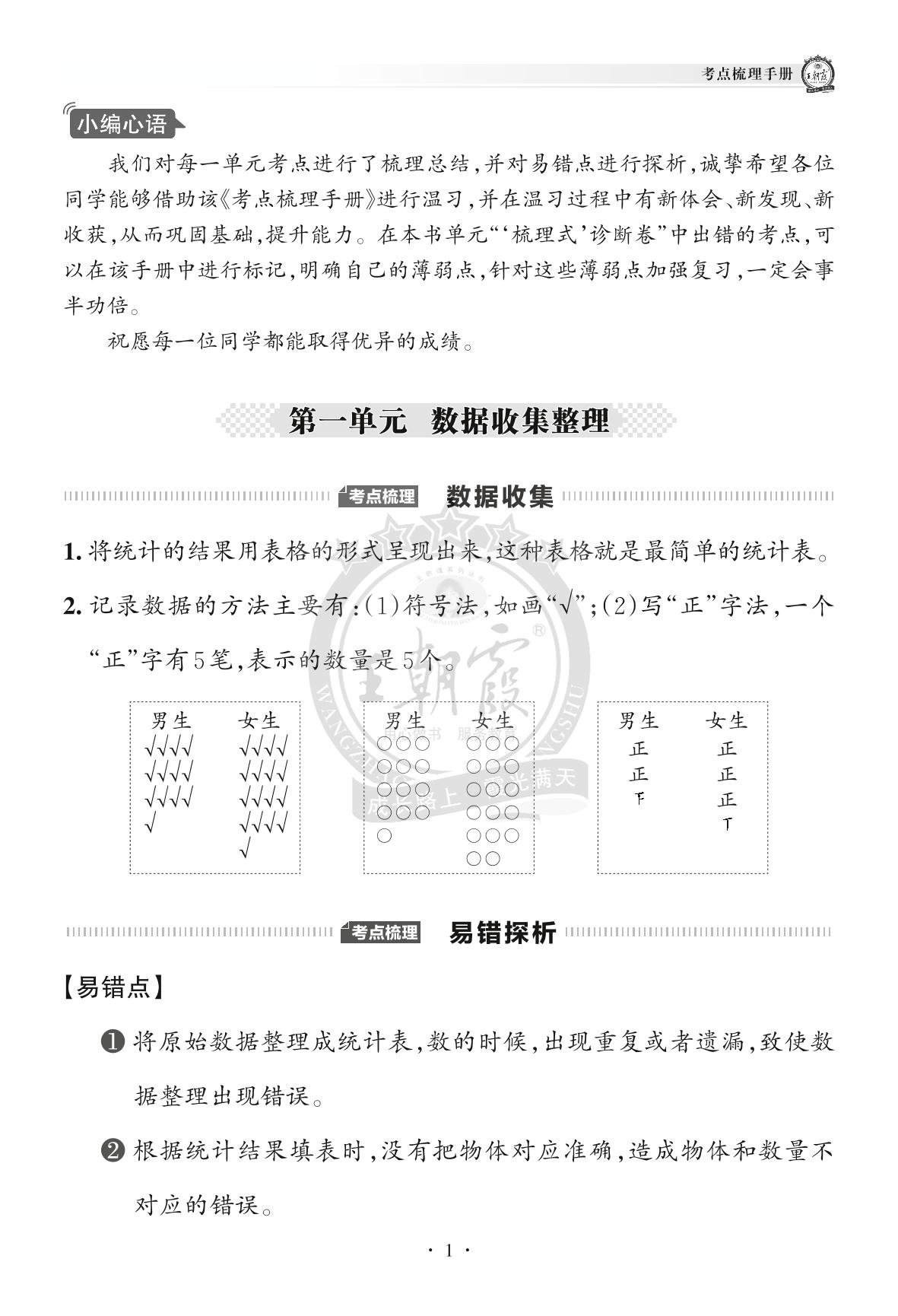 2022下册二年级数学人教版 考点梳理手册——第一单元 数据收集整理