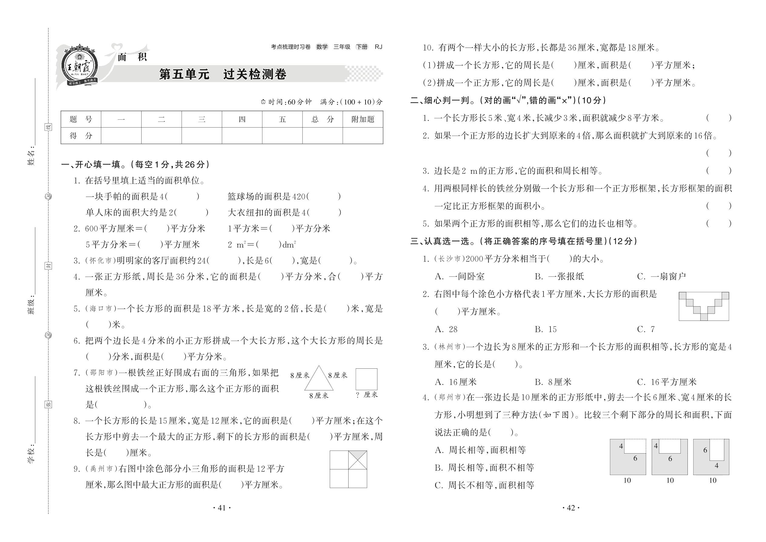2022下册三年级数学人教版 第五单元 过关检测卷