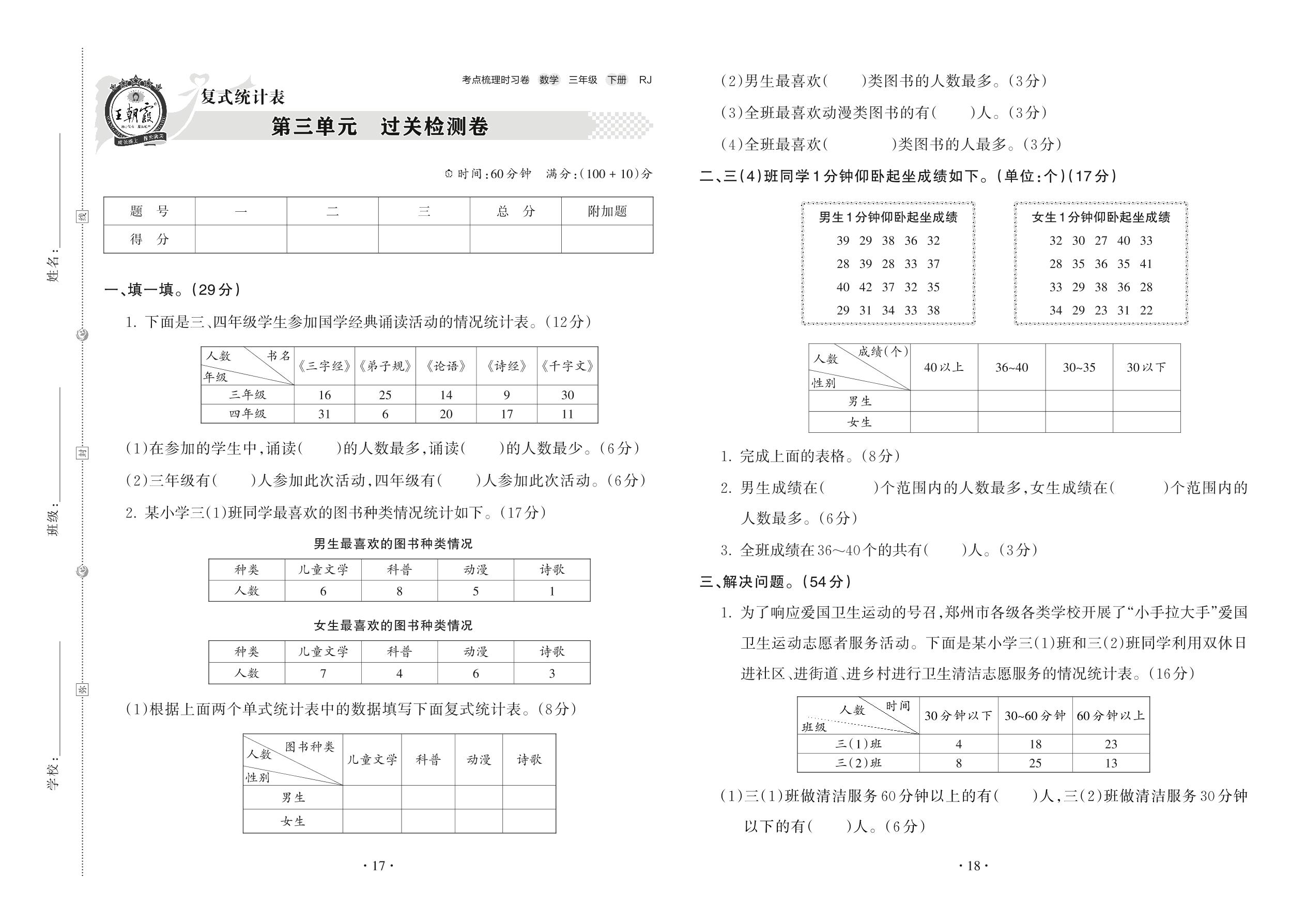 2022下册三年级数学人教版 第三单元 过关检测卷