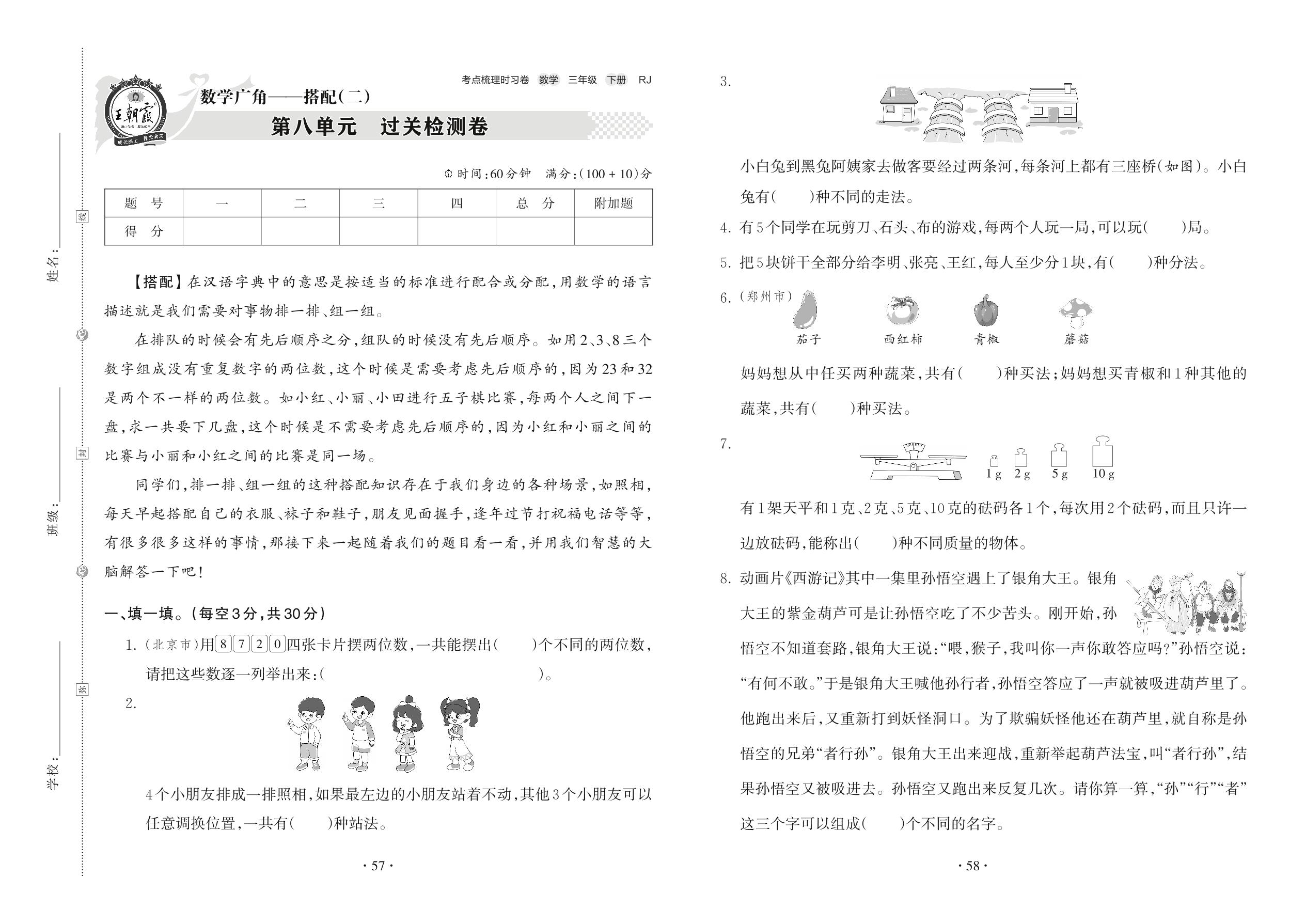 2022下册三年级数学人教版 第八单元 过关检测卷
