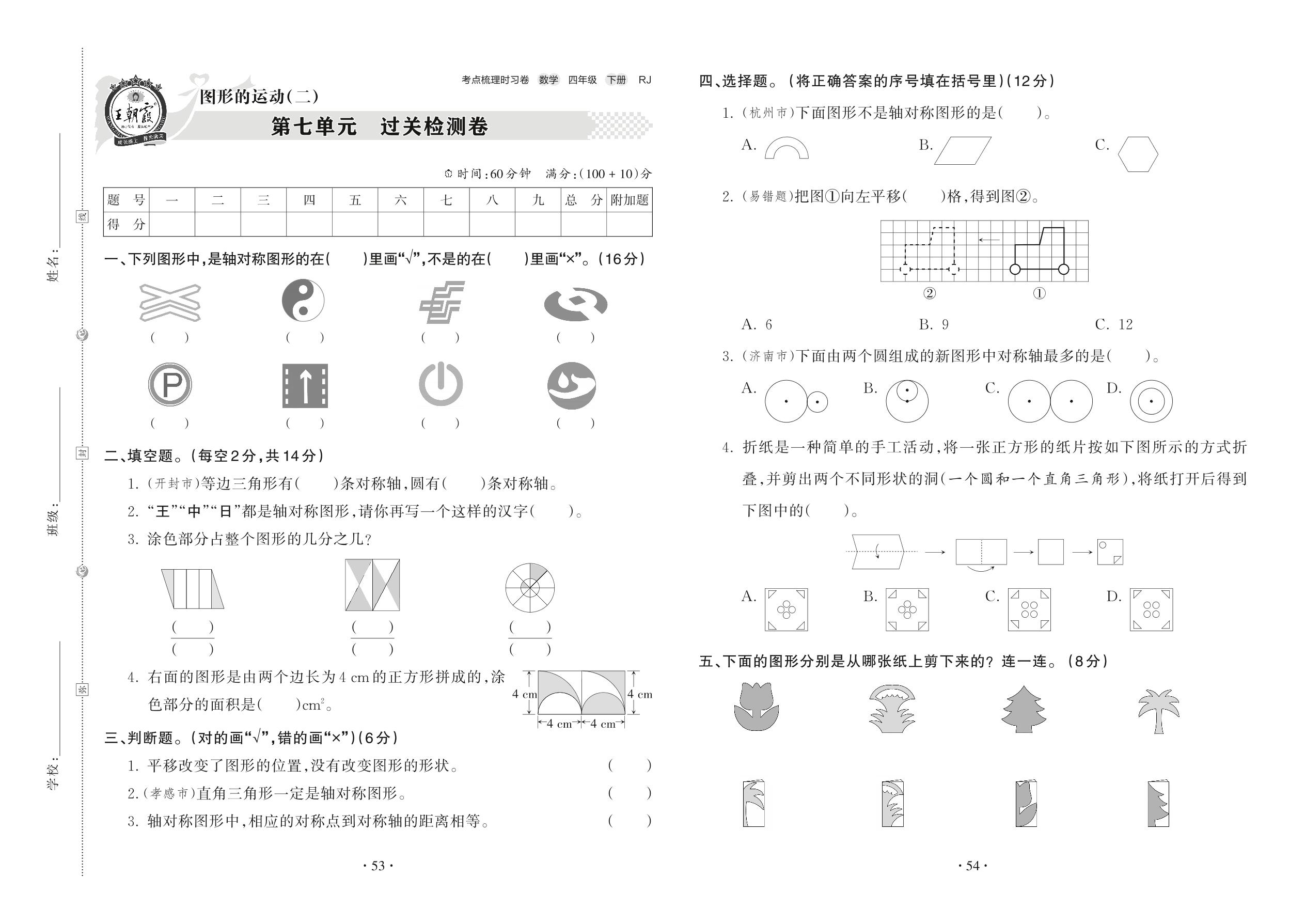 四年级数学人教版下册单元卷