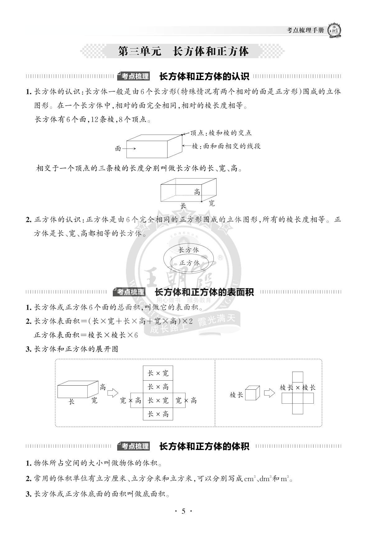 2022下册五年级数学人教版 考点梳理手册——第三单元 长方体和正方体