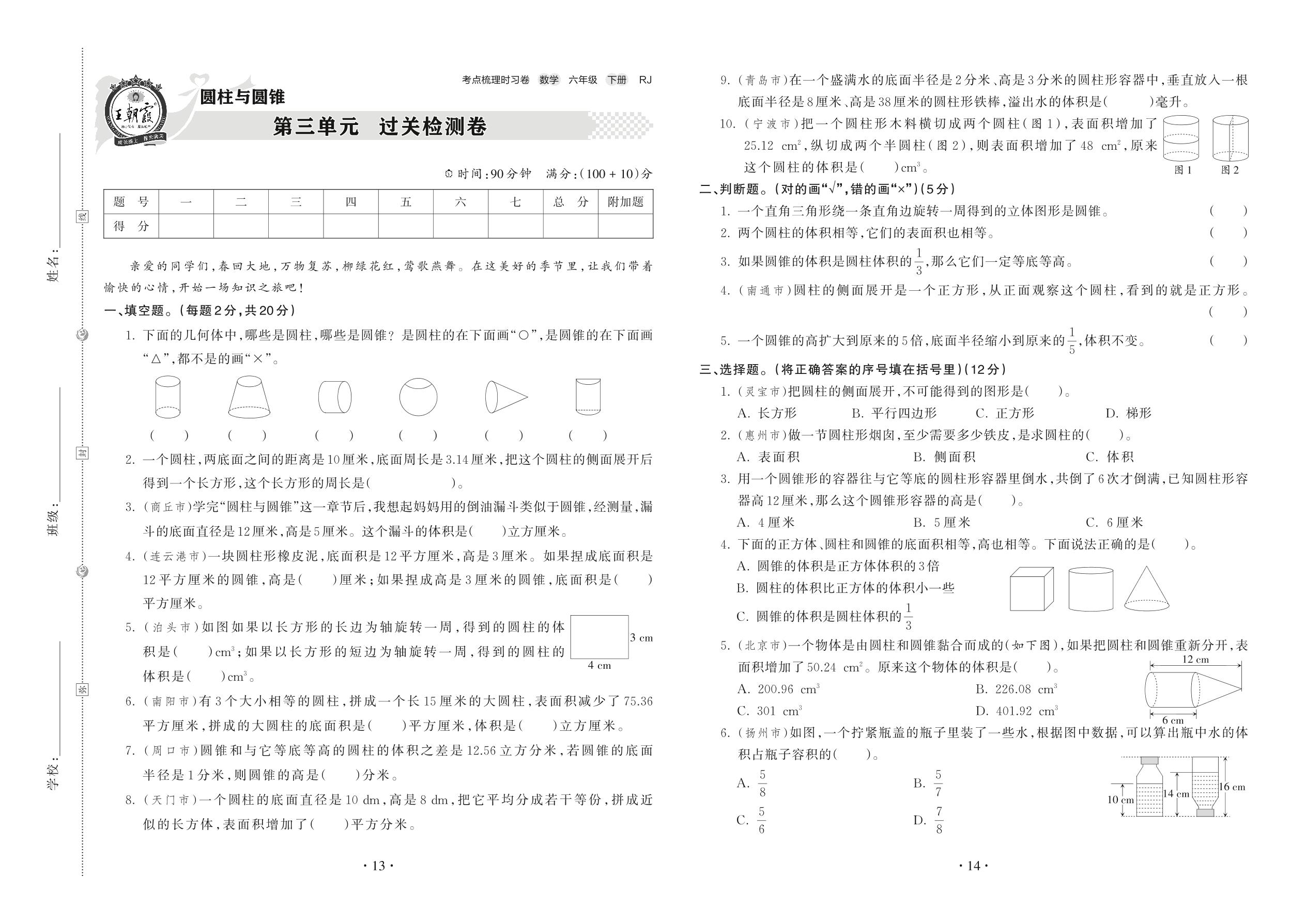 2022下册六年级数学人教版 第三单元 过关检测卷