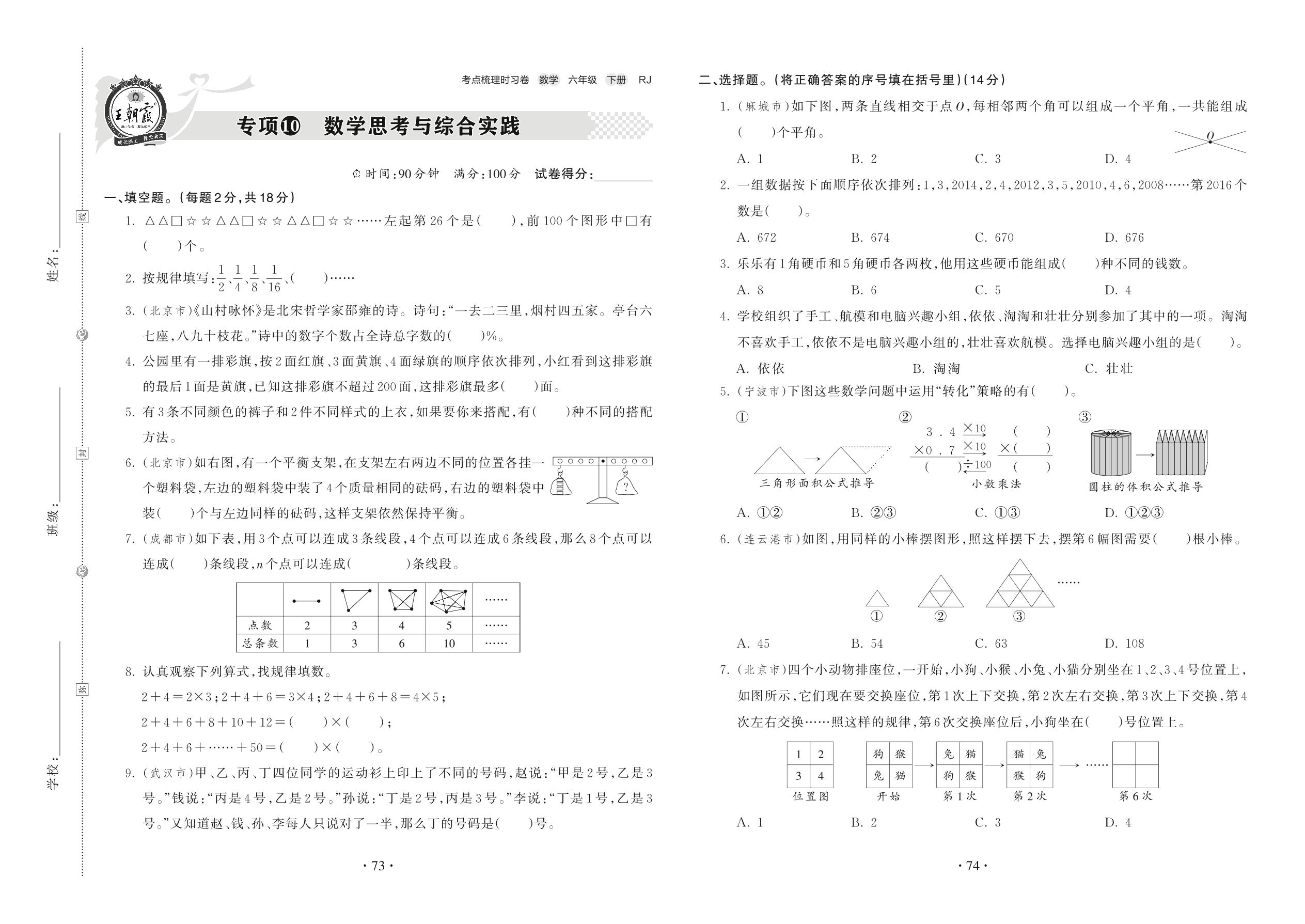 2022下册六年级数学人教版 专项10 数学思考与综合实践