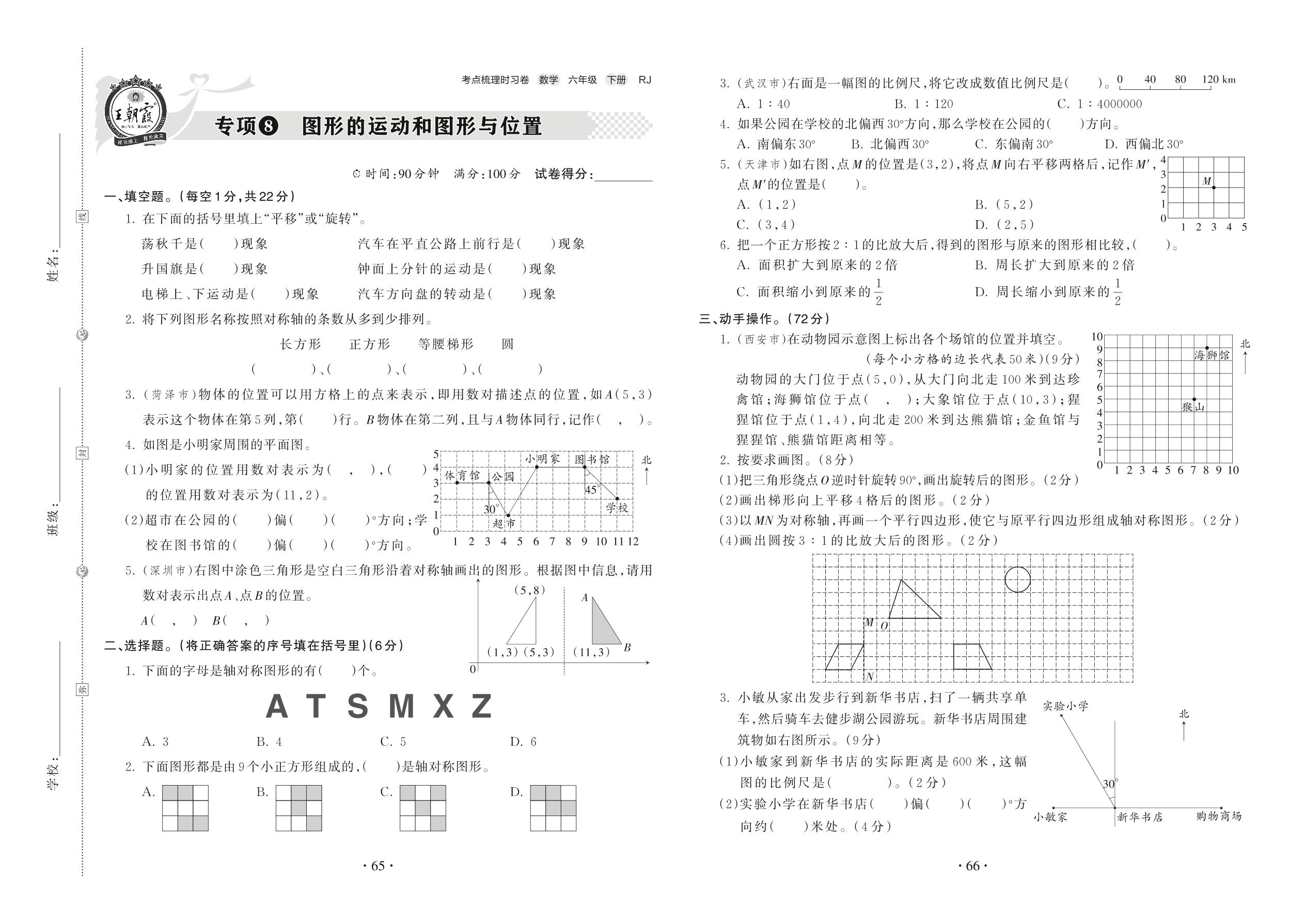 2022下册六年级数学人教版 专项8 图形的运动和图形与位置