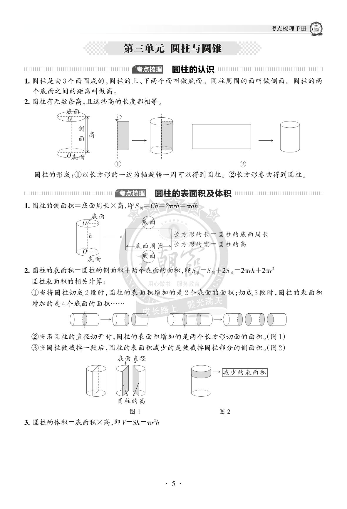 2022下册六年级数学人教版 考点梳理手册——第三单元 圆柱与圆锥