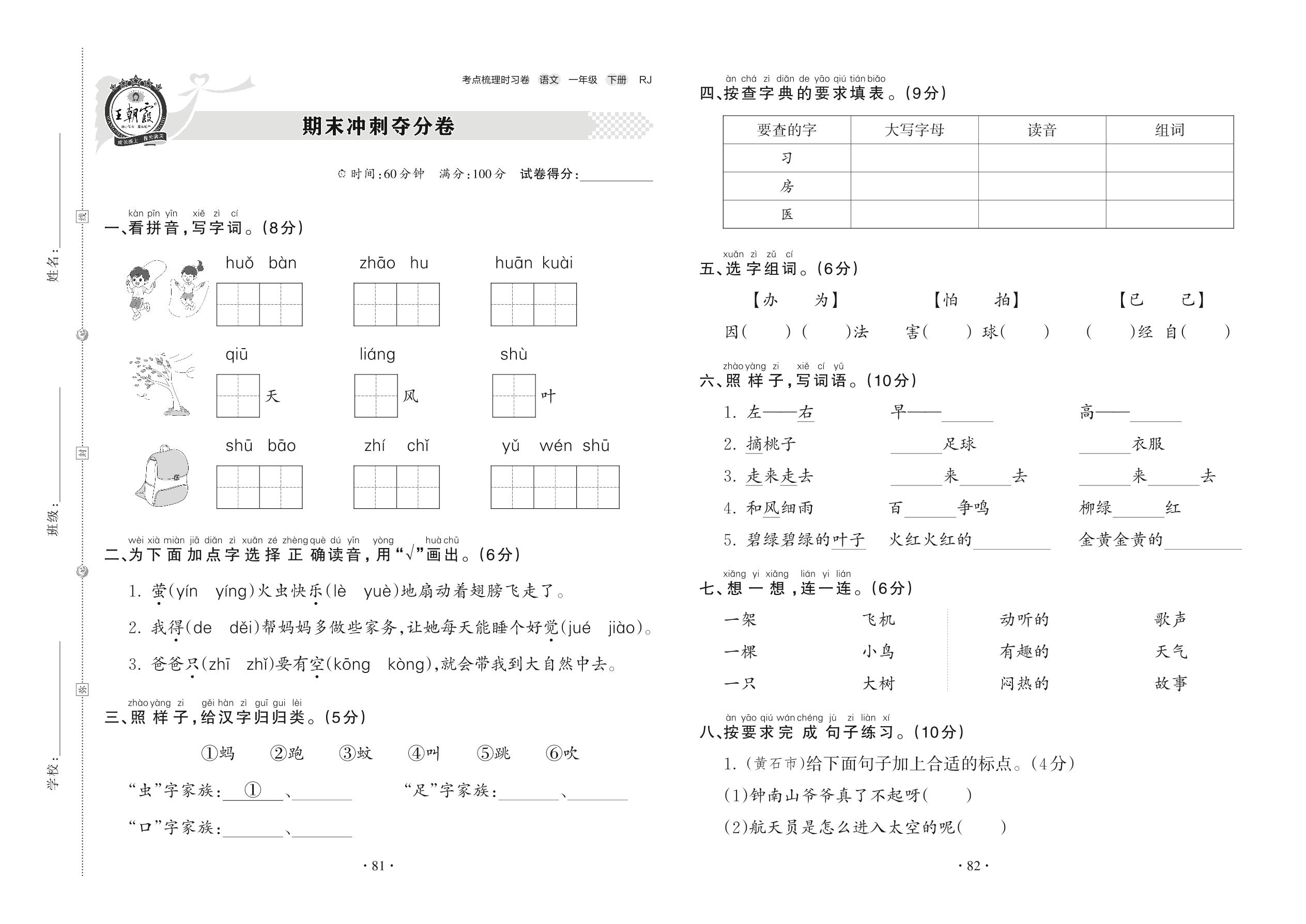 2022下册一年级语文人教版 期末冲刺夺分卷