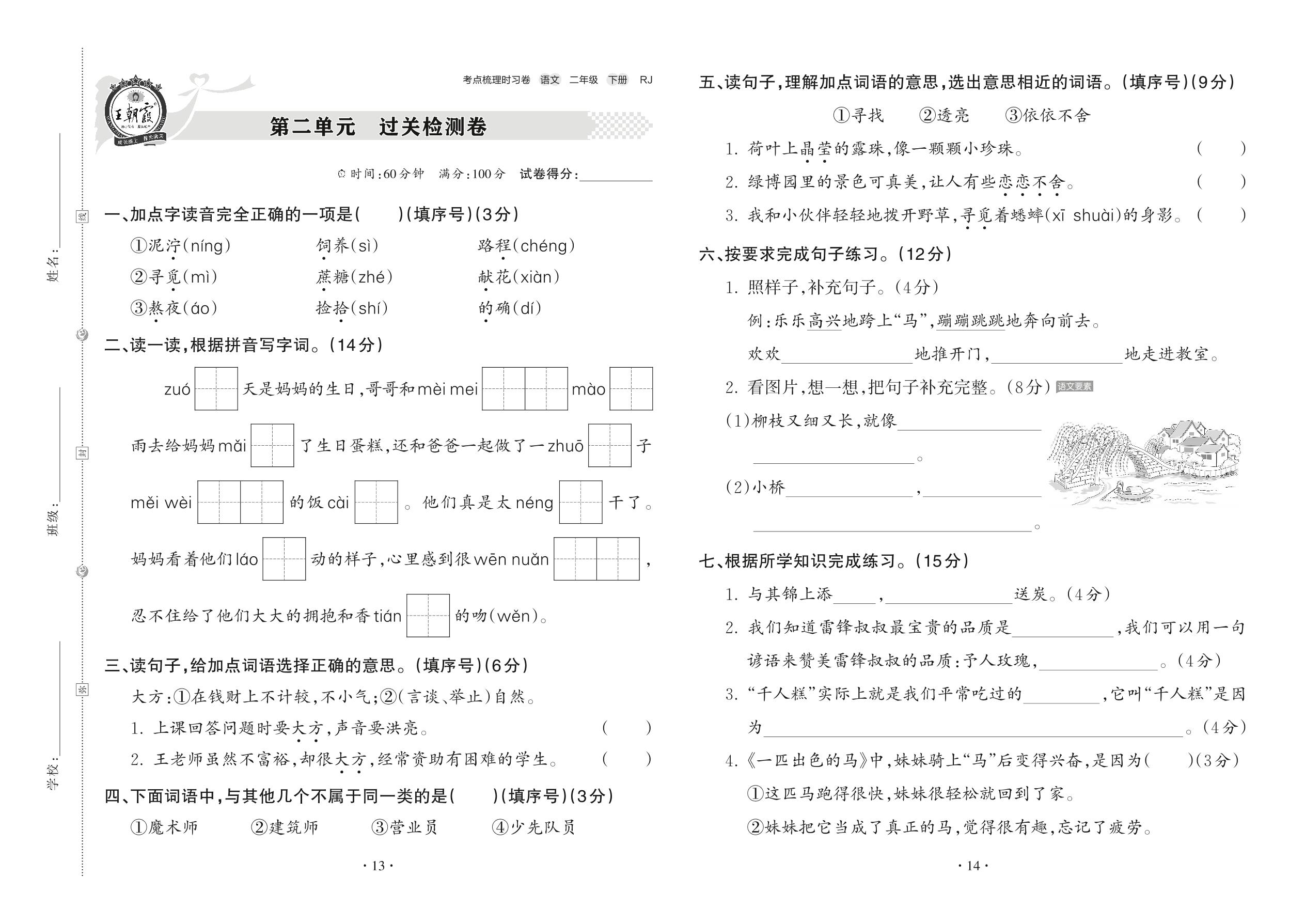 二年级语文人教版下册单元卷