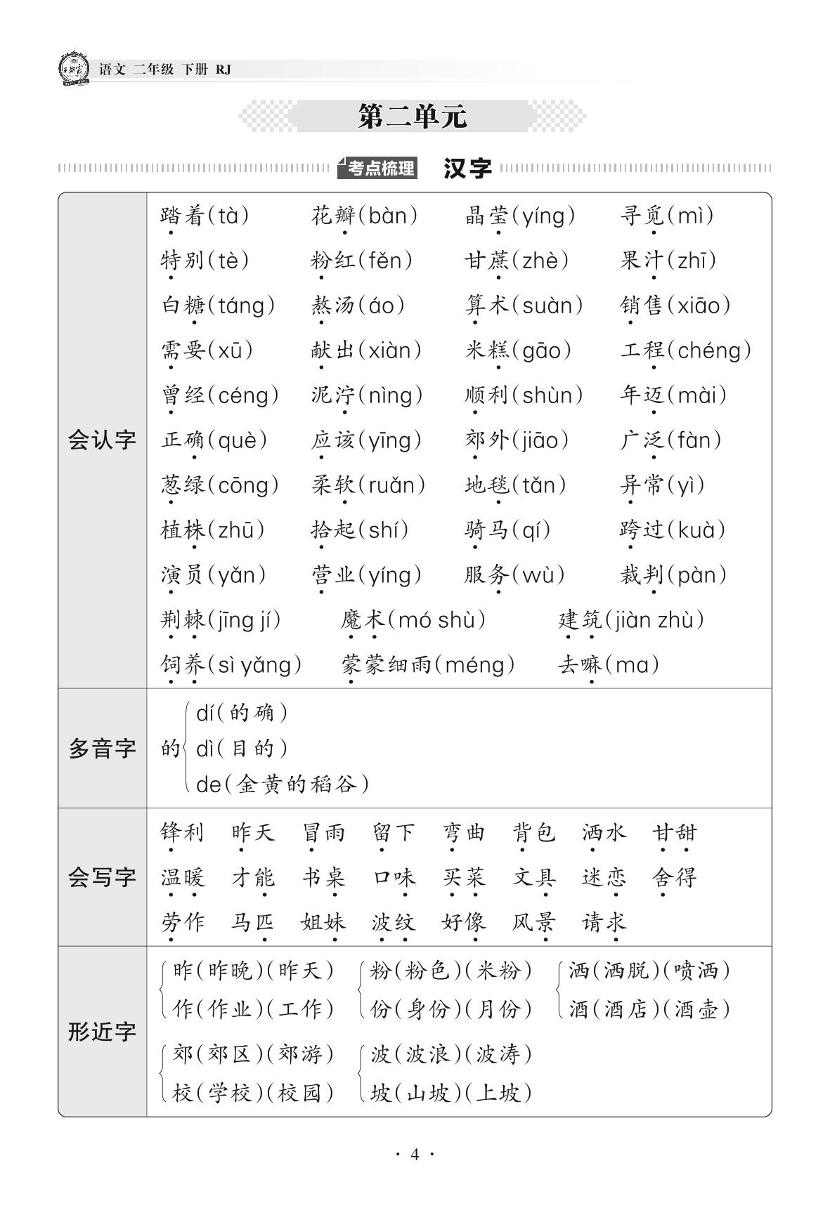 2022下册二年级语文人教版 考点梳理手册——第二单元