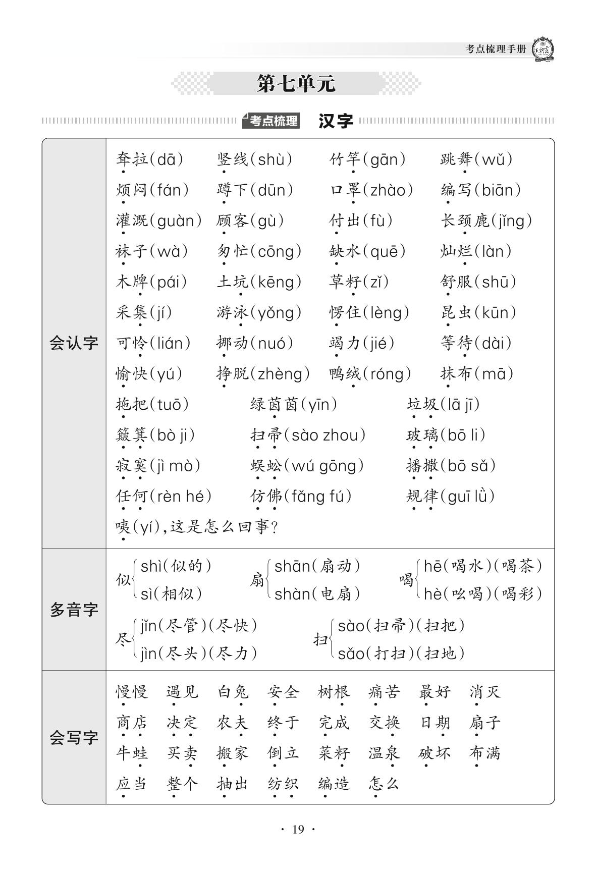 2022下册二年级语文人教版 考点梳理手册——第七单元