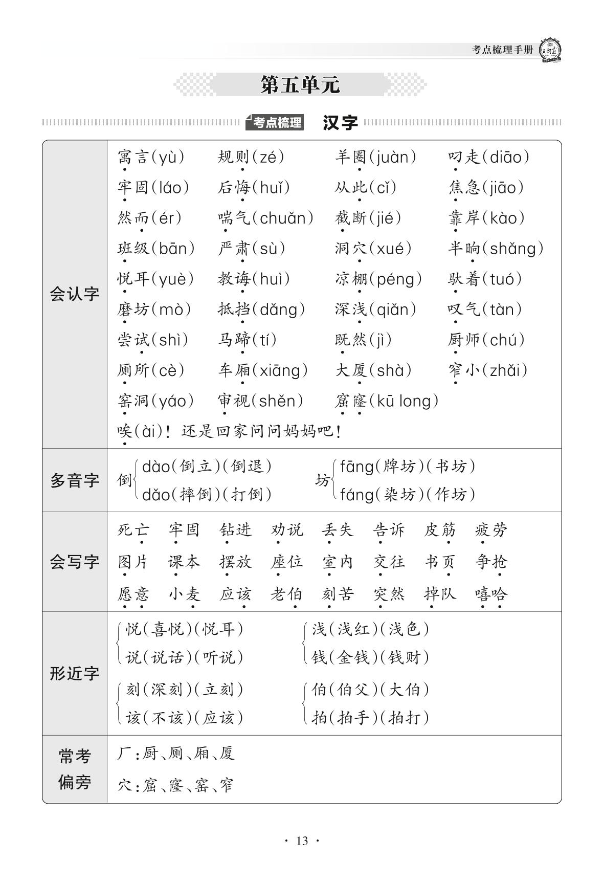 2022下册二年级语文人教版 考点梳理手册——第五单元
