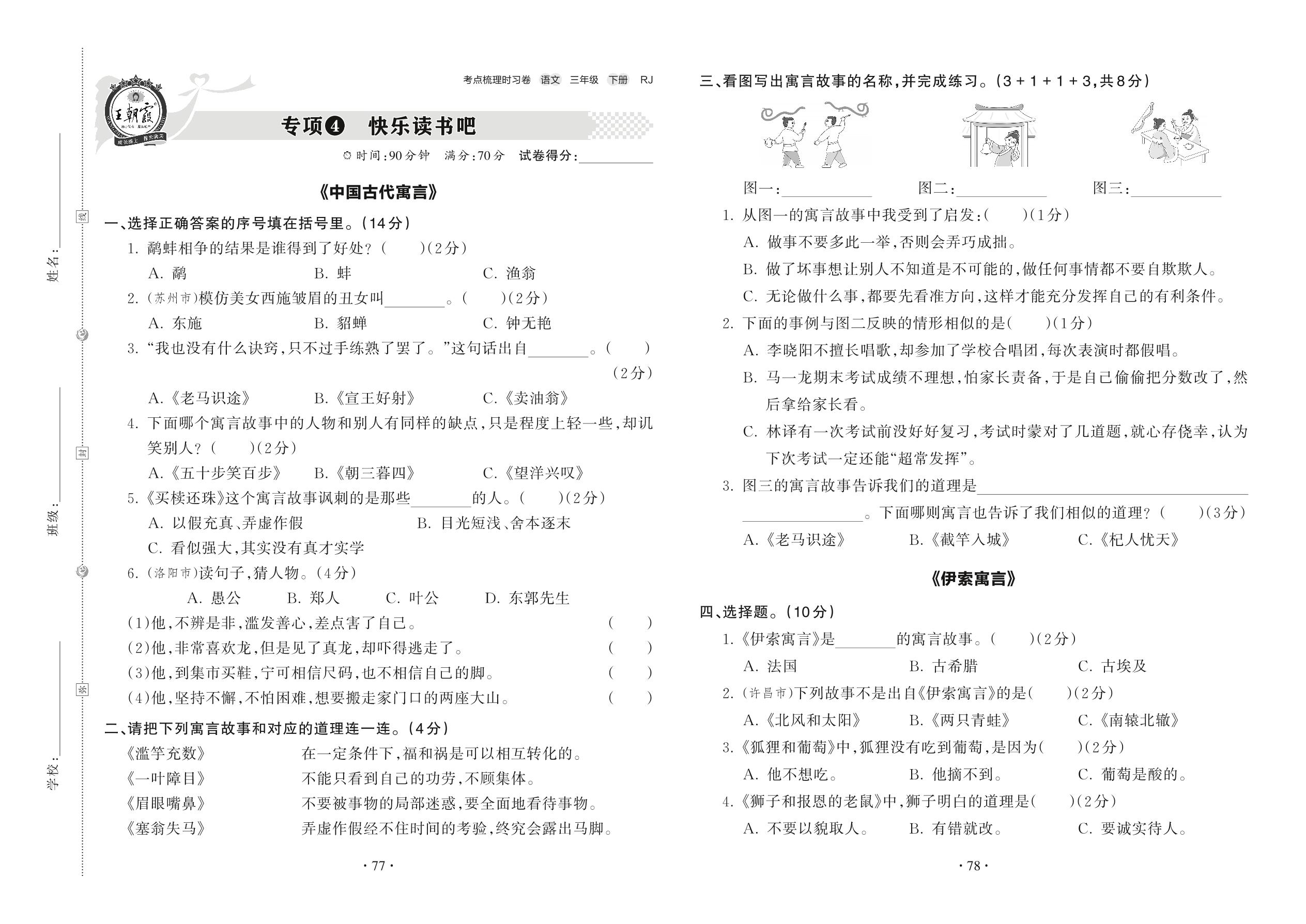 2022下册三年级语文人教版 专项4 快乐读书吧
