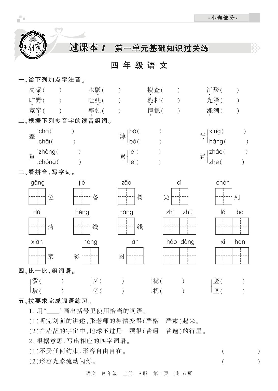 王朝霞期末过课本四年级上册语文(S版)_R210801224923【0】