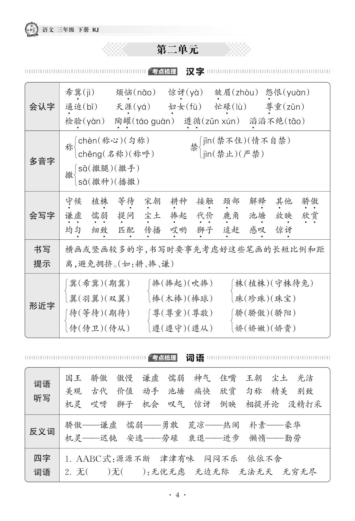 2022下册三年级语文人教版 考点梳理手册——第二单元