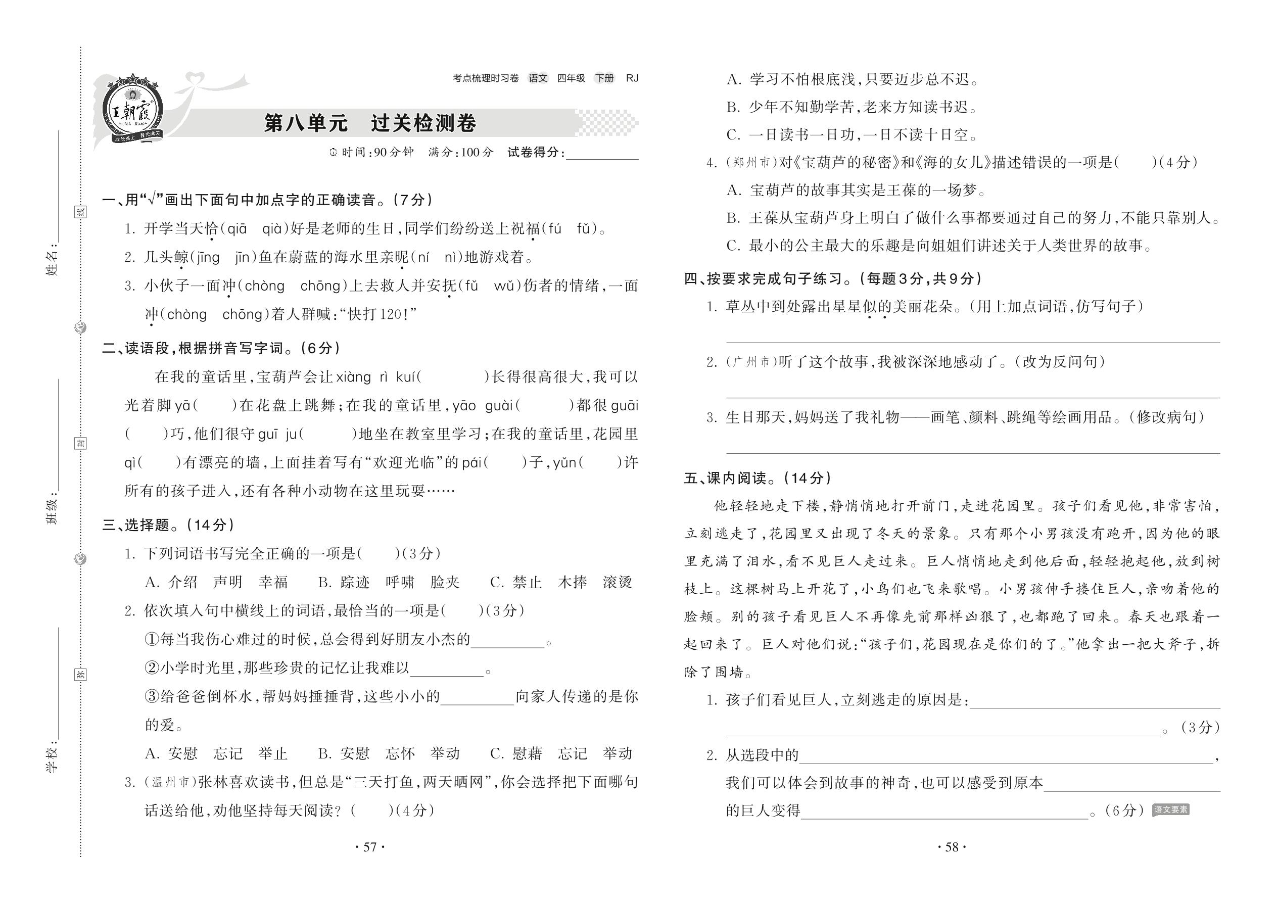 四年级语文人教版下册单元卷
