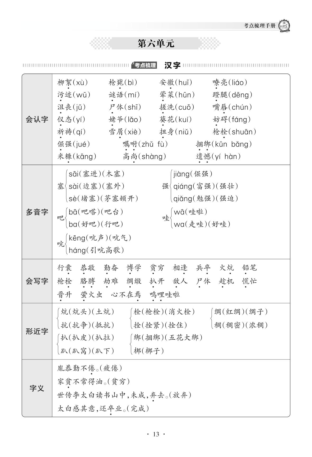 2022下册四年级语文人教版 考点梳理手册——第六单元
