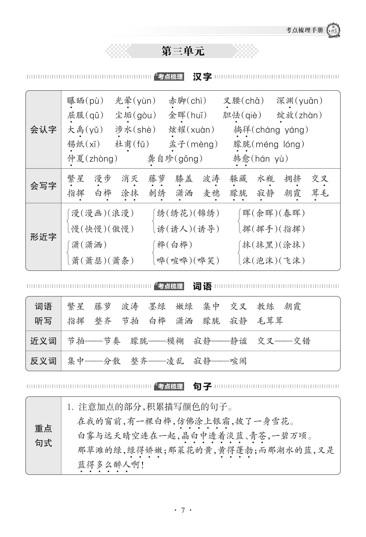 2022下册四年级语文人教版 考点梳理手册——第三单元