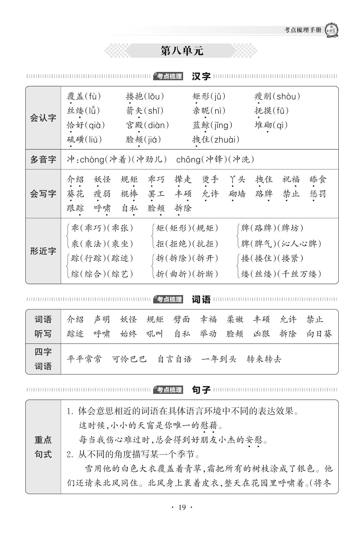 2022下册四年级语文人教版 考点梳理手册——第八单元