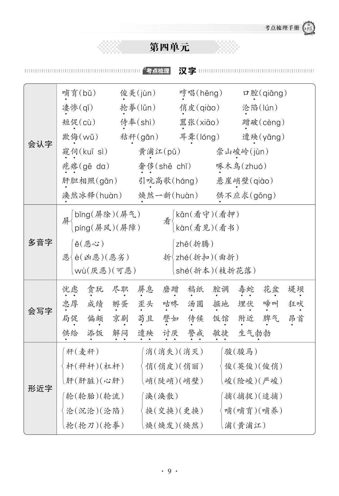 2022下册四年级语文人教版 考点梳理手册——第四单元