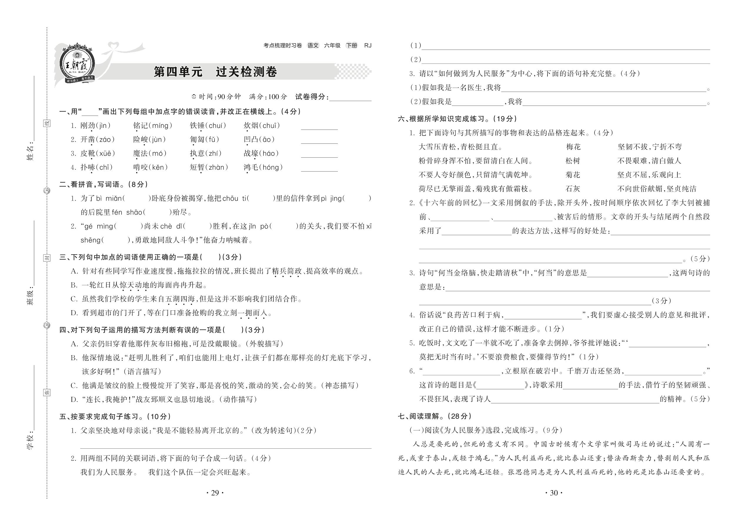 六年级语文人教版下册单元卷