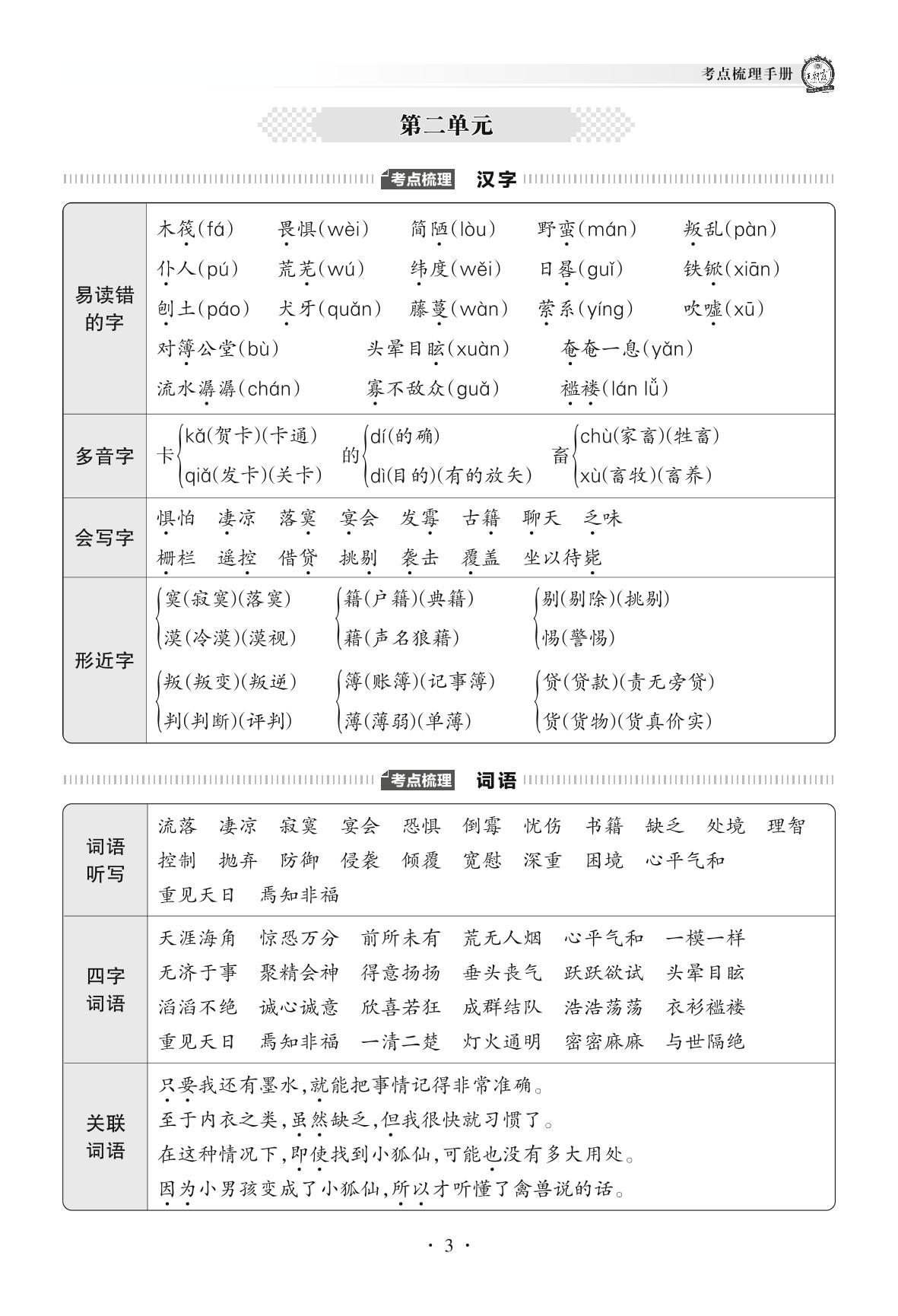 2022下册六年级语文人教版 考点梳理手册——第二单元
