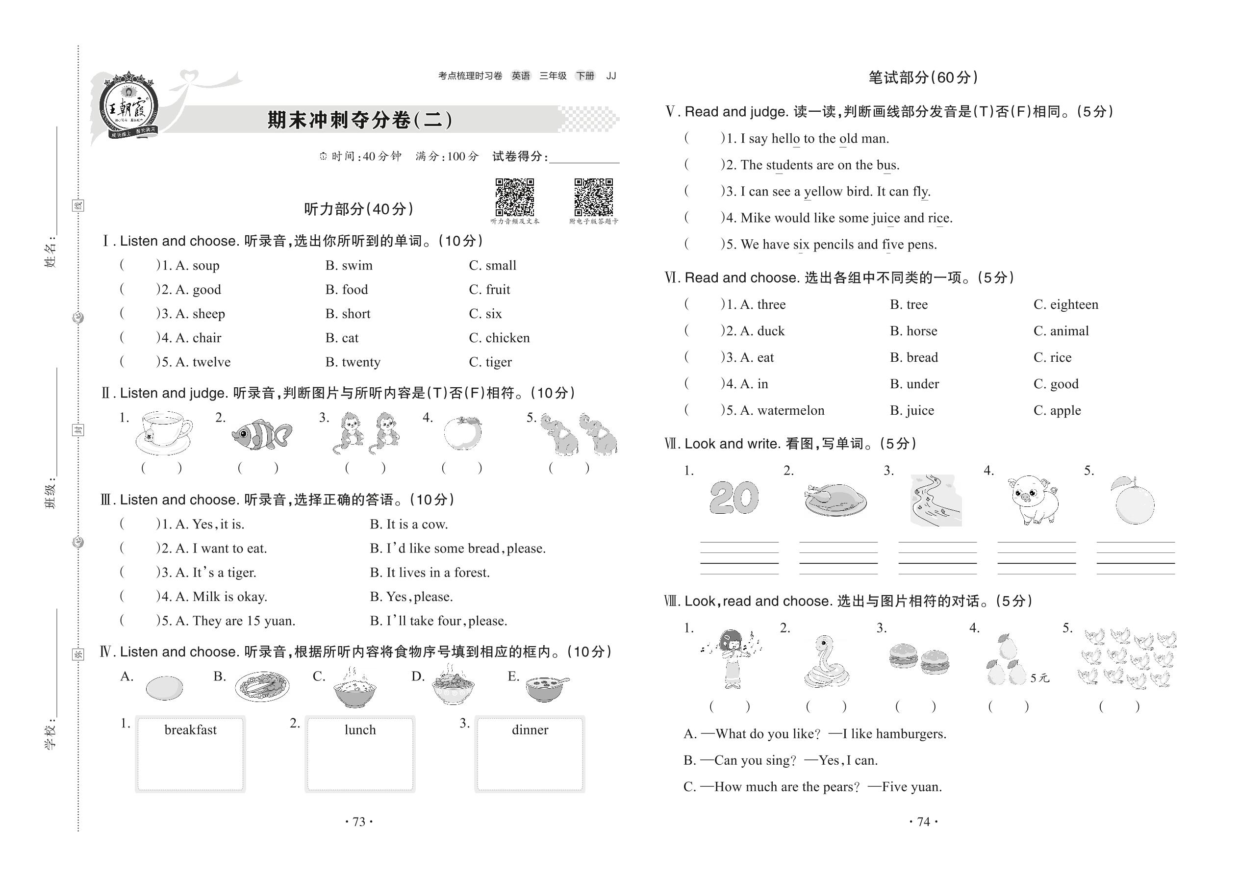 2022下册三年级英语冀教版 期末冲刺夺分卷(二)