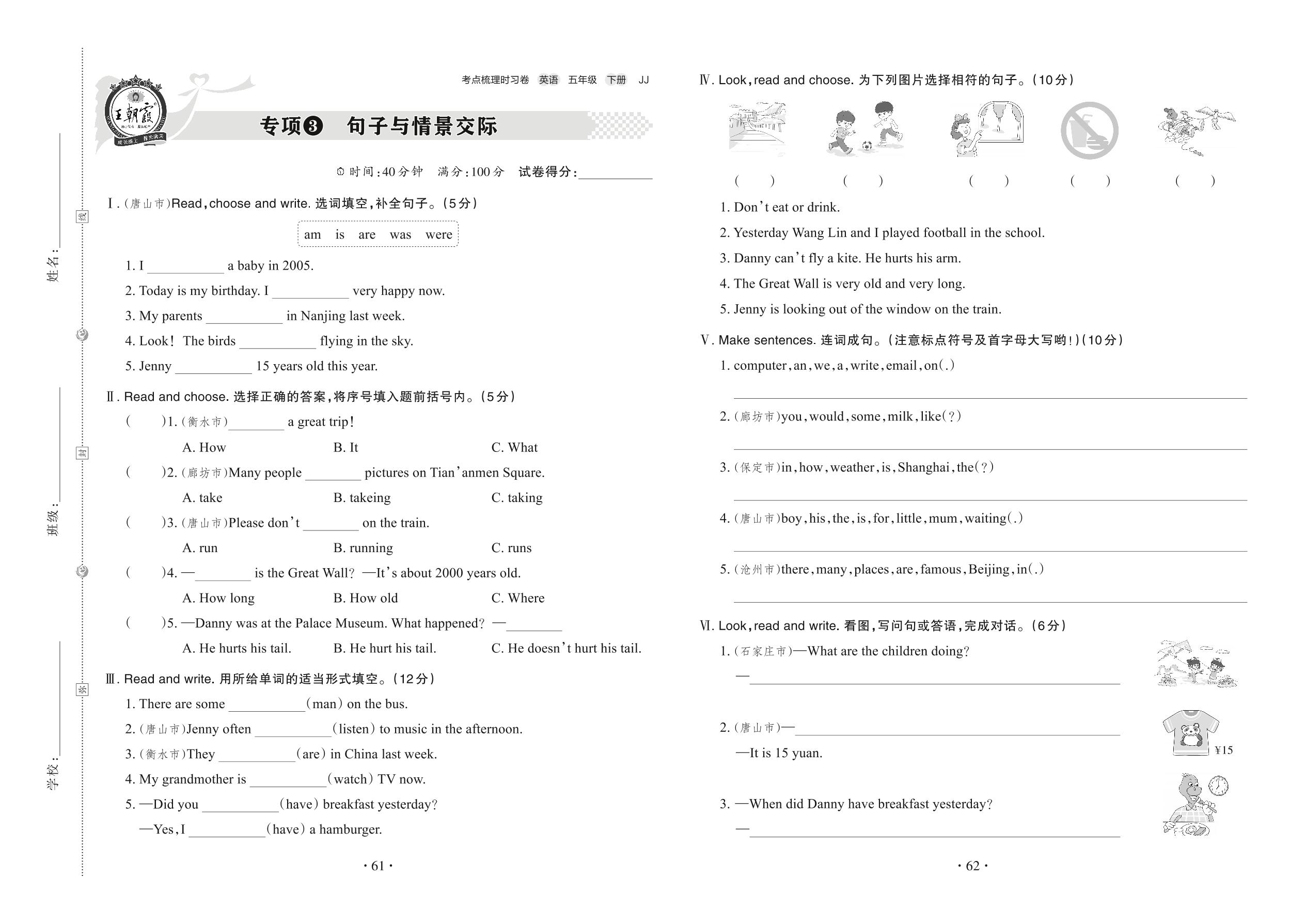 2022下册五年级英语冀教版 专项3 句子与情景交际