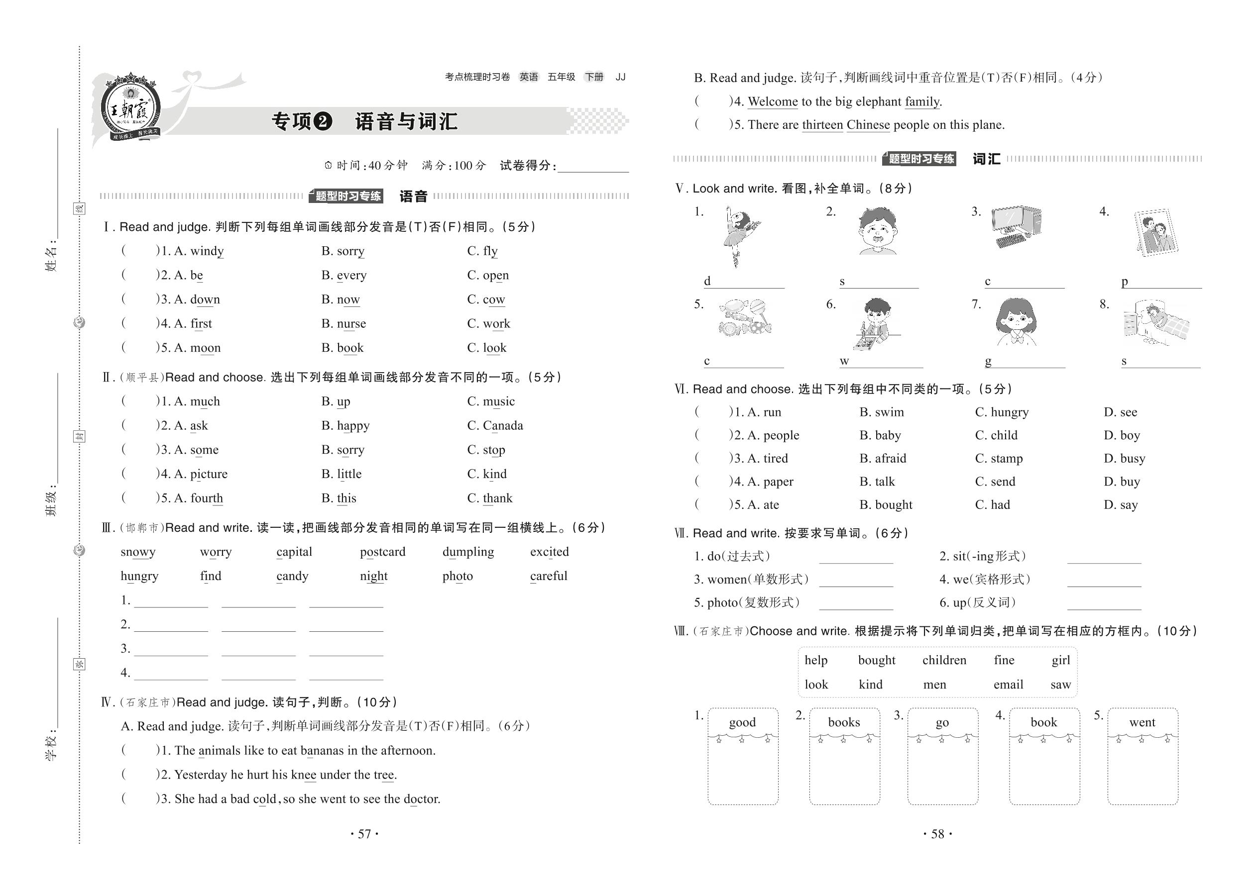 2022下册五年级英语冀教版 专项2 语音与词汇