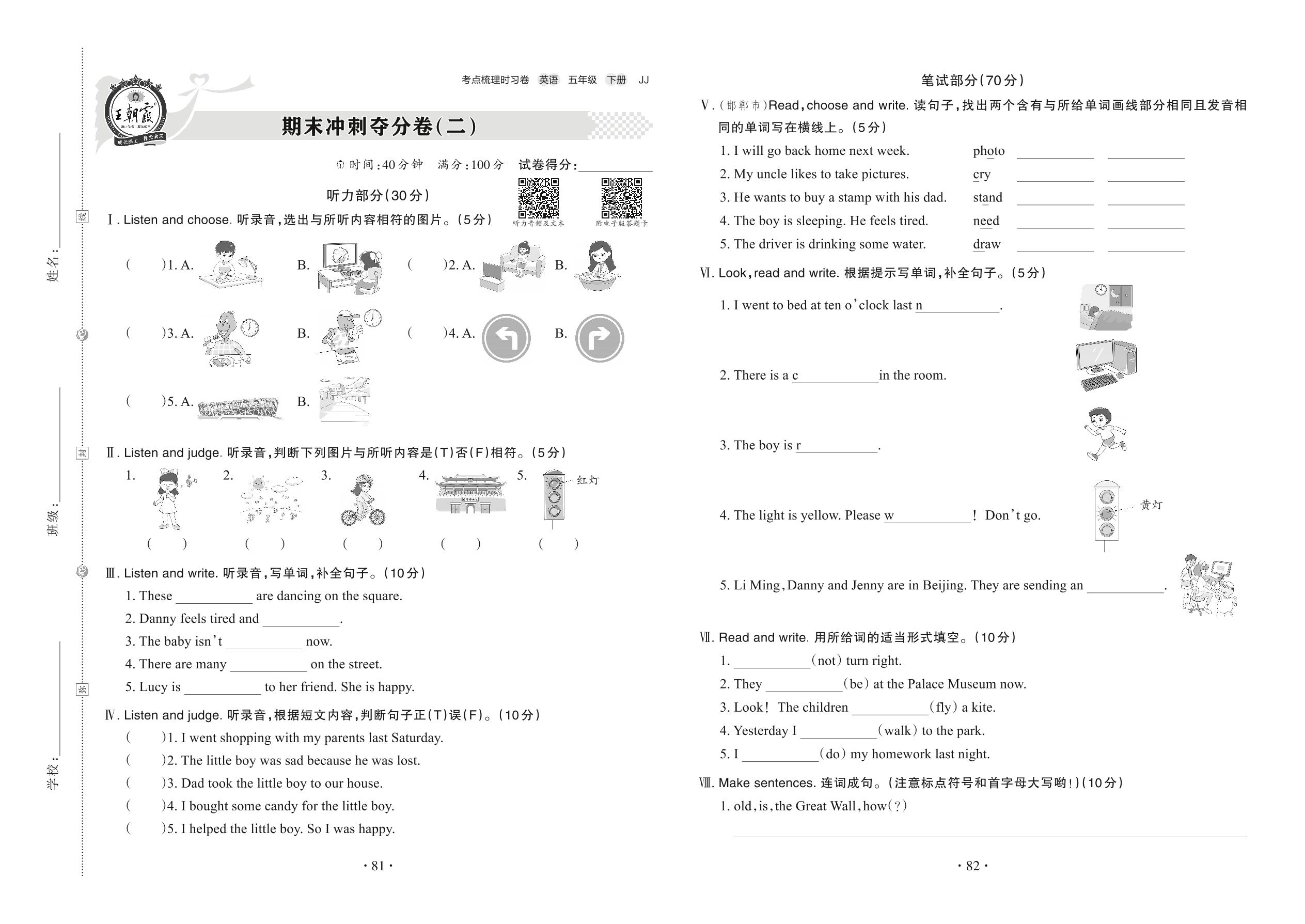 2022下册五年级英语冀教版 期末冲刺夺分卷(二)