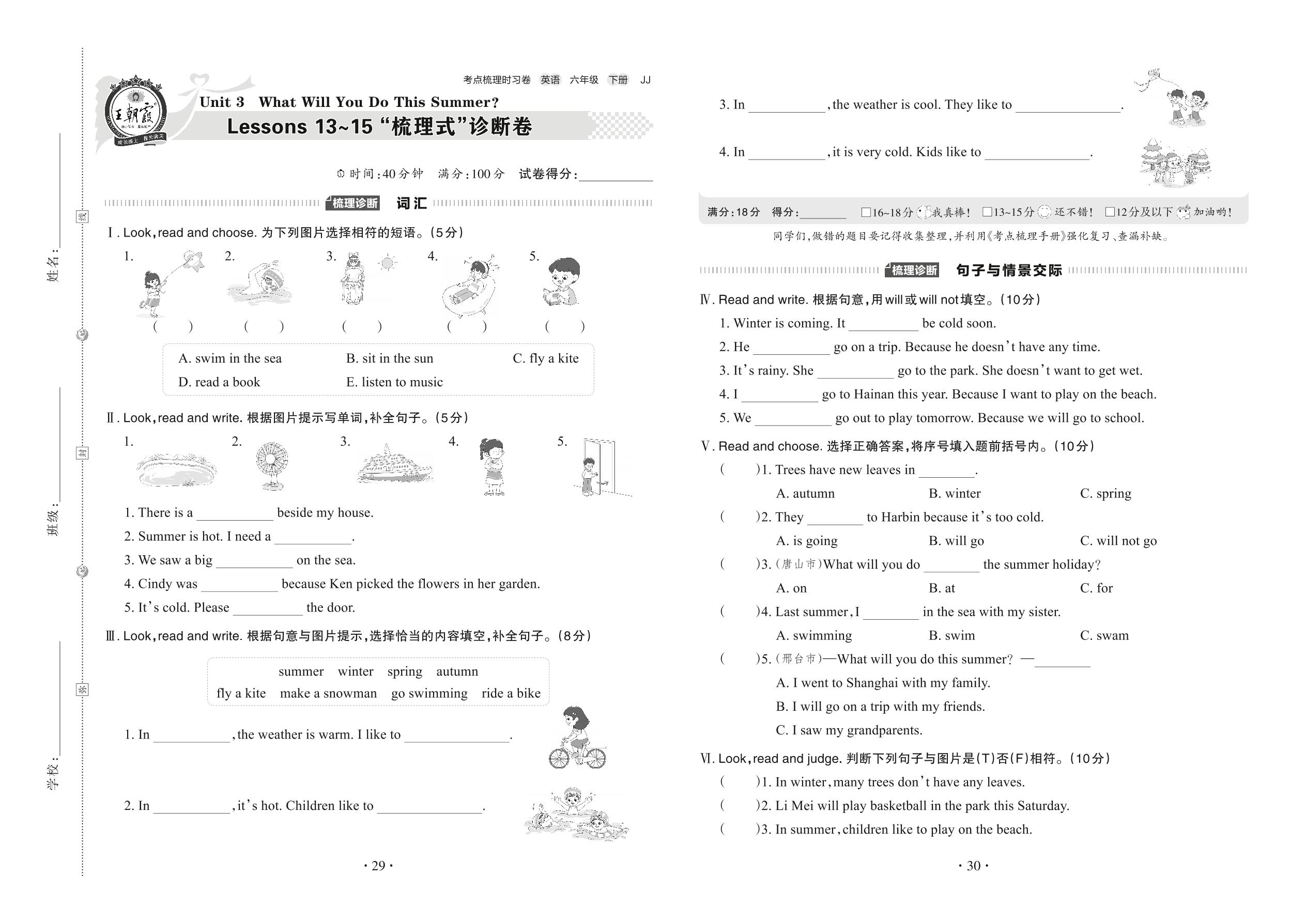 六年级英语冀教版下册单元卷