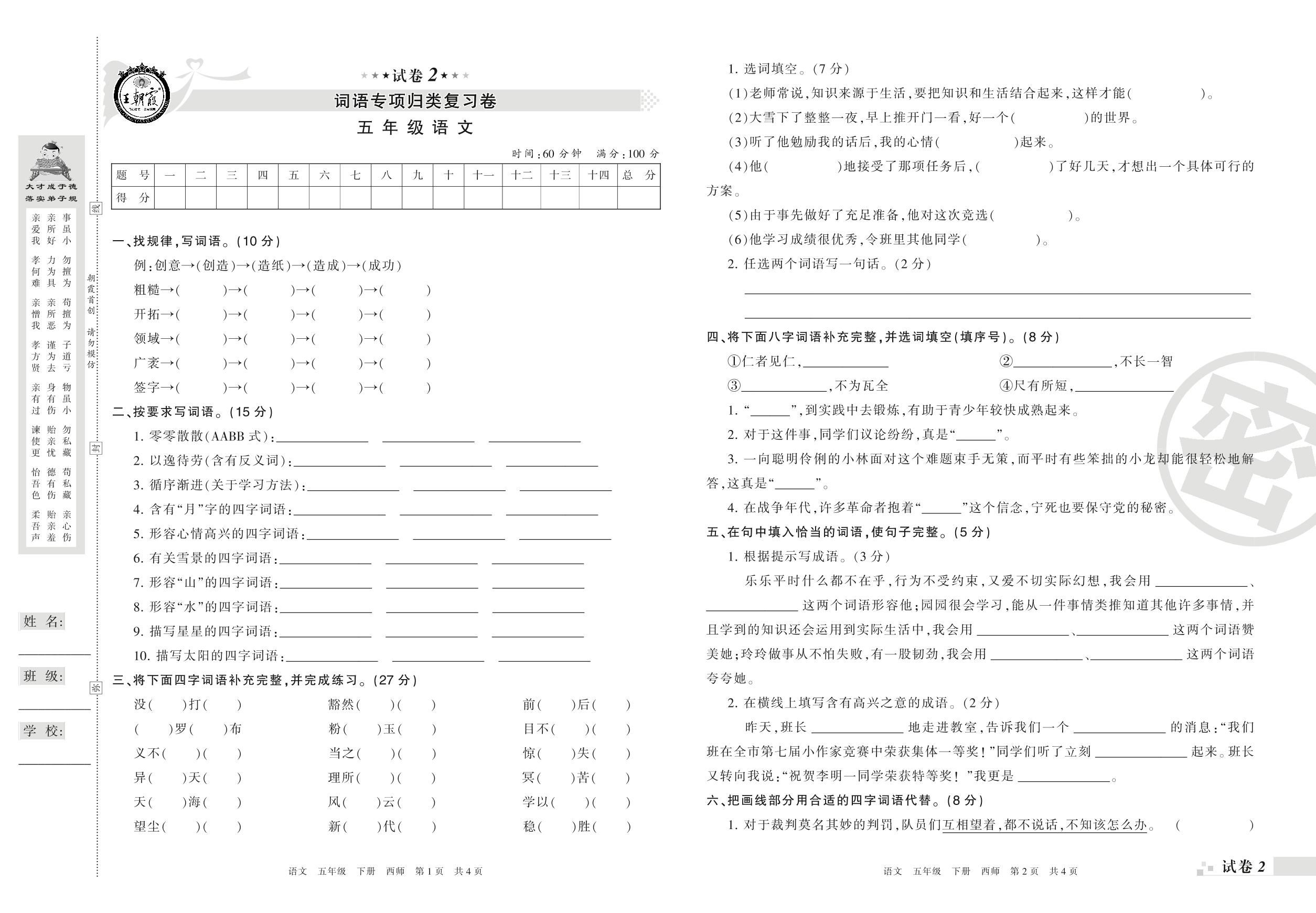 五年级语文西师版下册专项卷