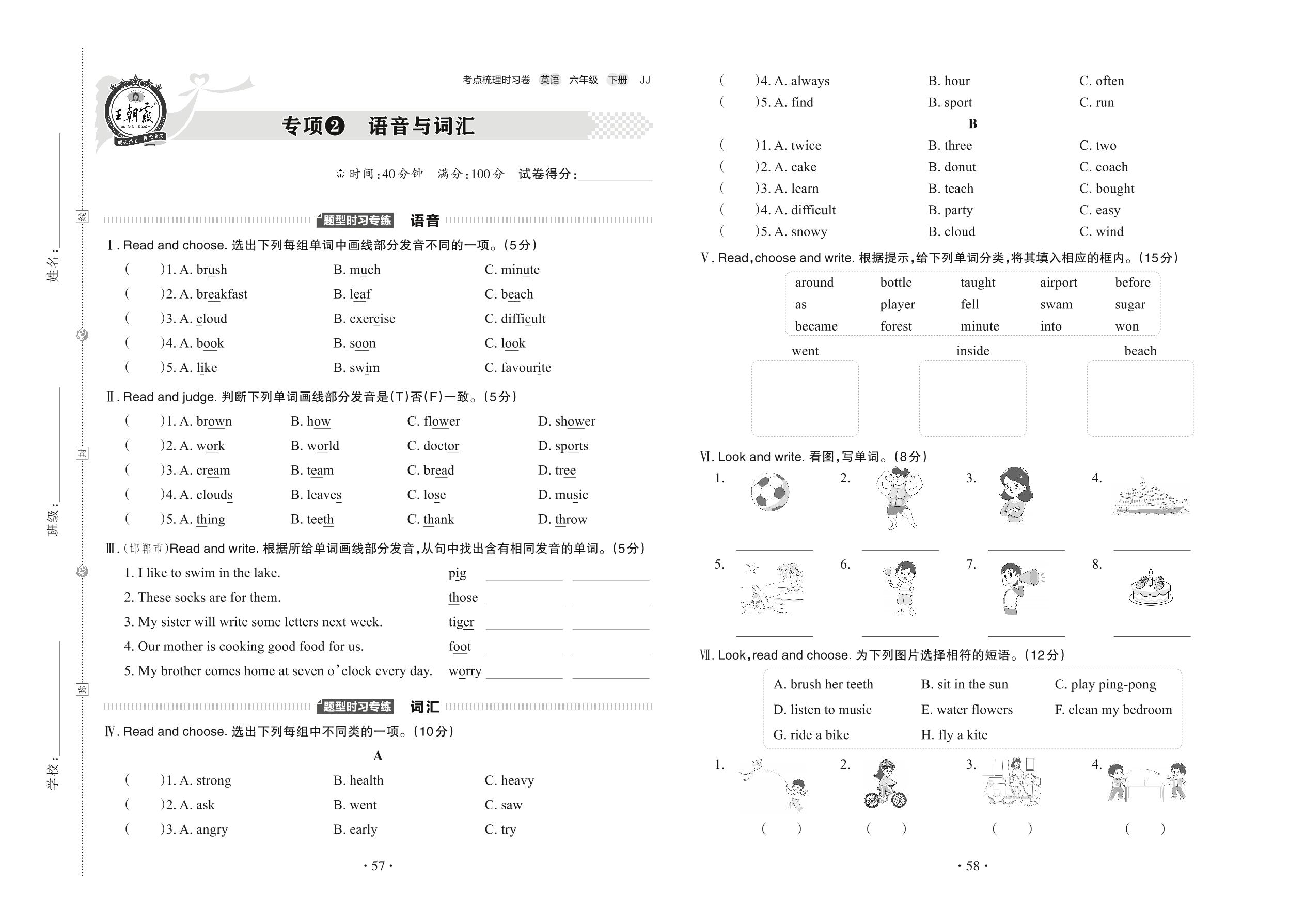 2022下册六年级英语冀教版 专项2 语音与词汇