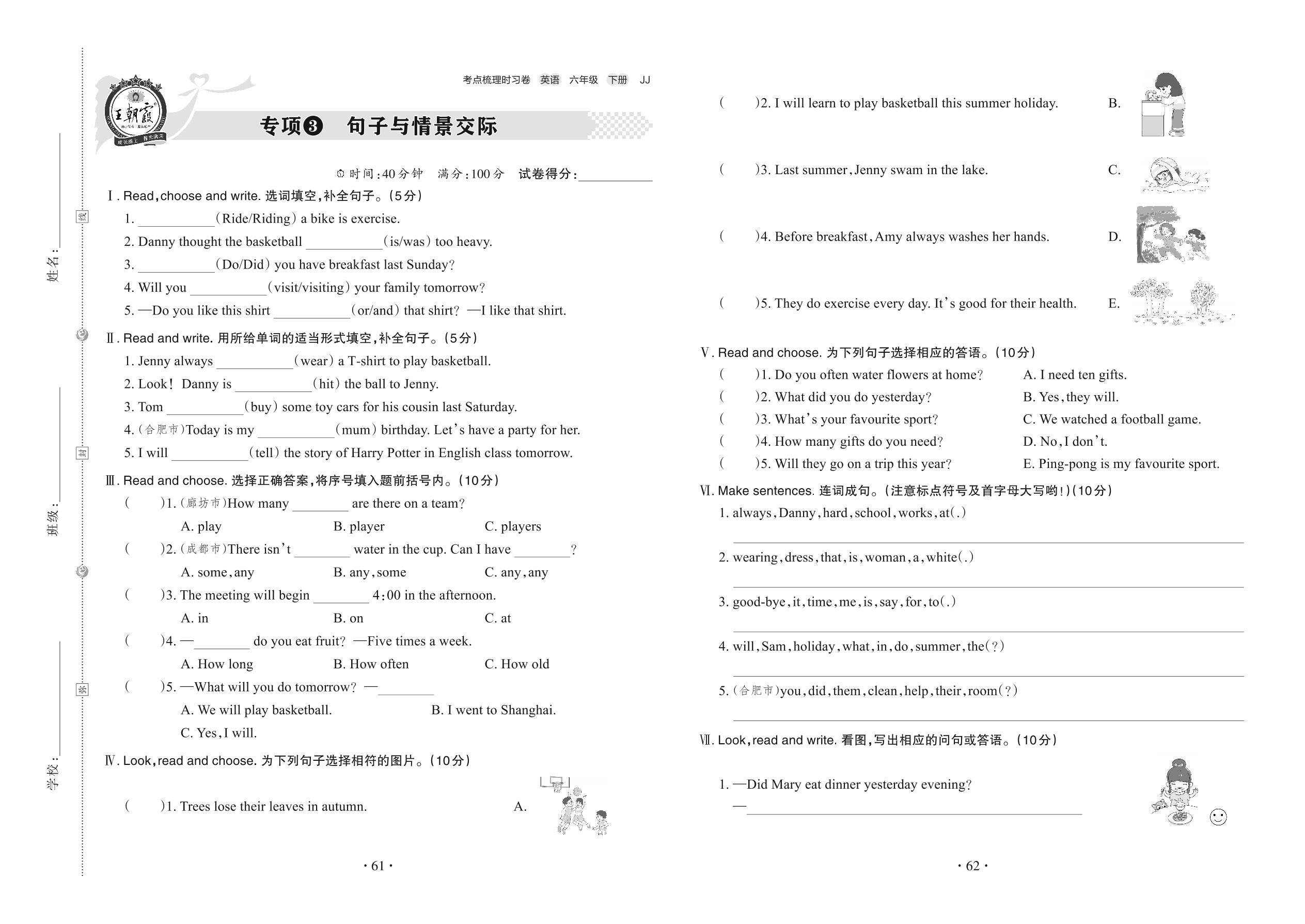 2022下册六年级英语冀教版 专项3 句子与情景交际