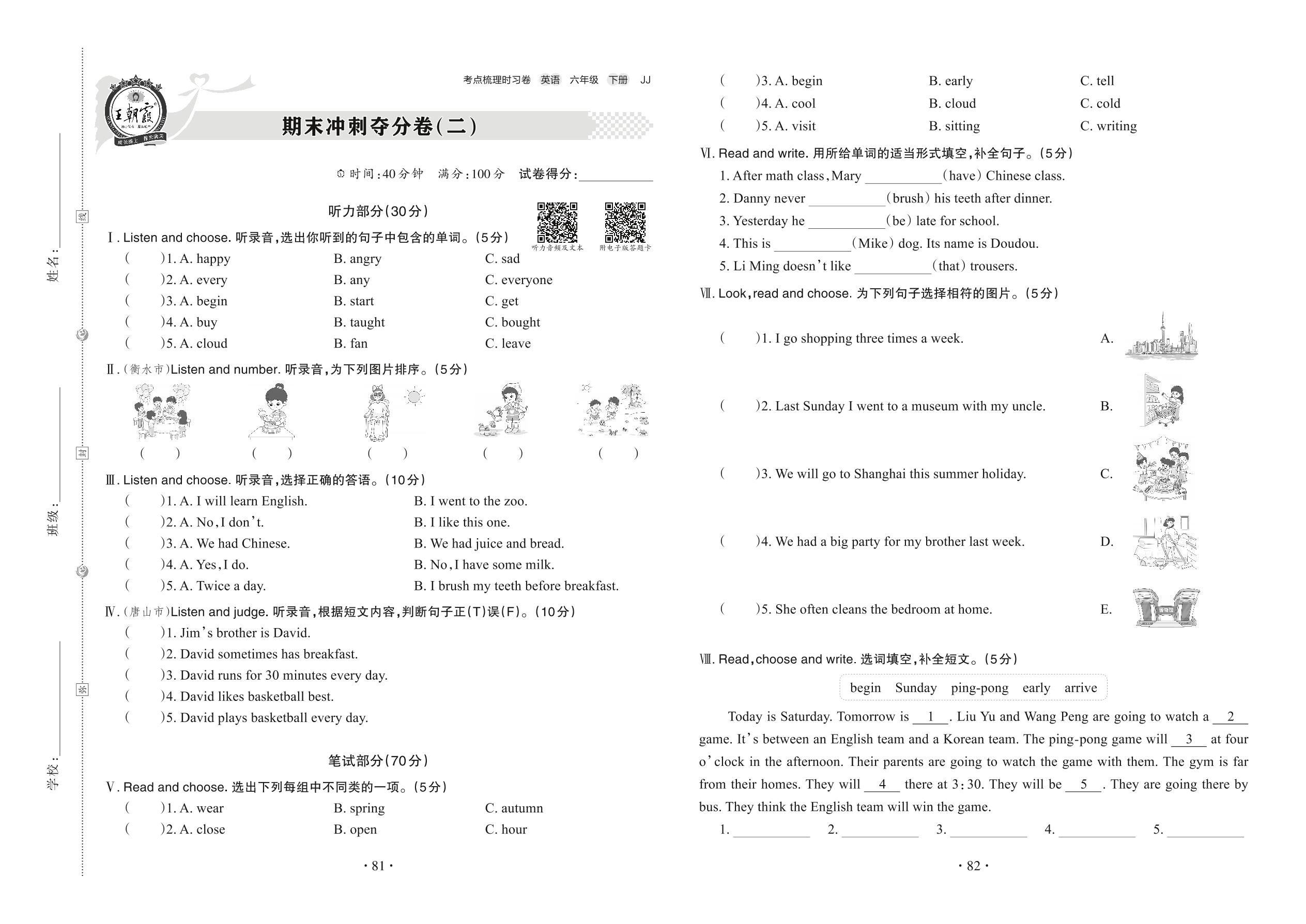 2022下册六年级英语冀教版 期末冲刺夺分卷(二)