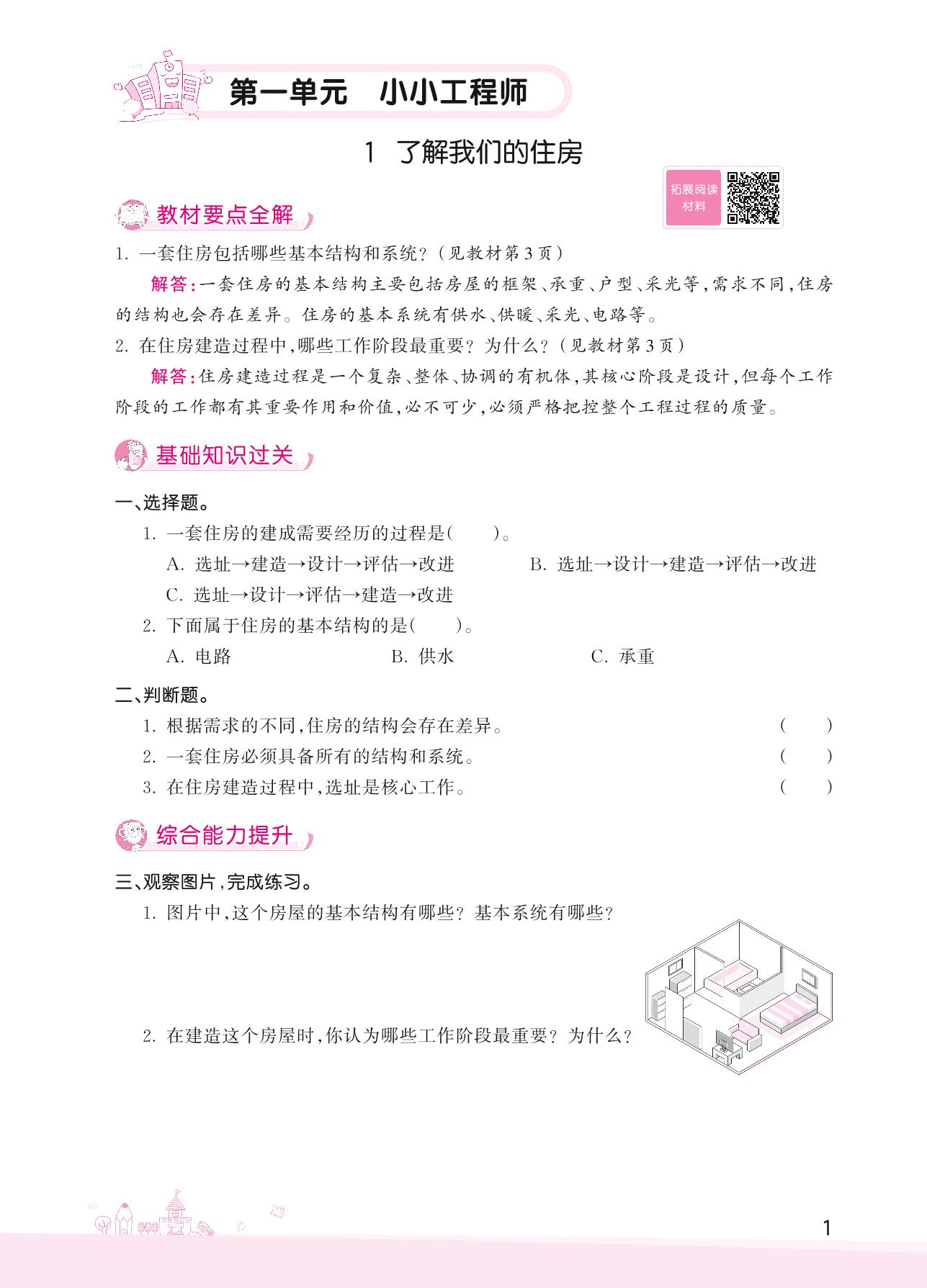 2022下册六年级科学教科版 第一单元——1 了解我们的住房