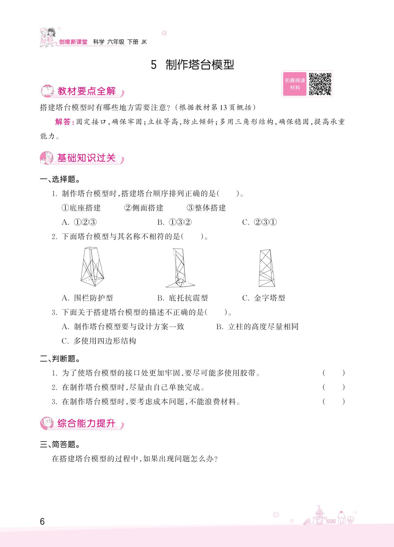 2022下册六年级科学教科版 第一单元——5 制作塔台模型