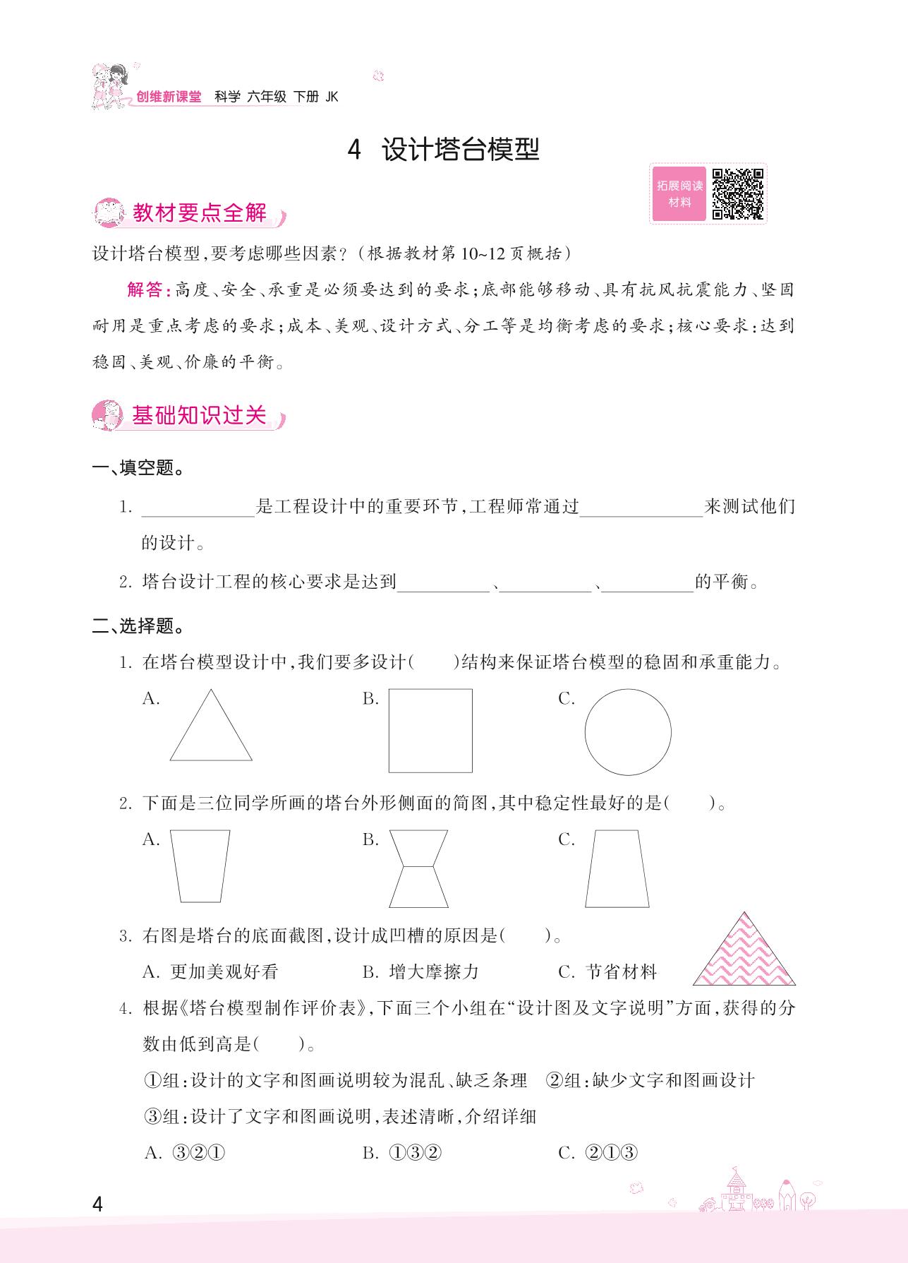 2022下册六年级科学教科版 第一单元——4 设计塔台模型
