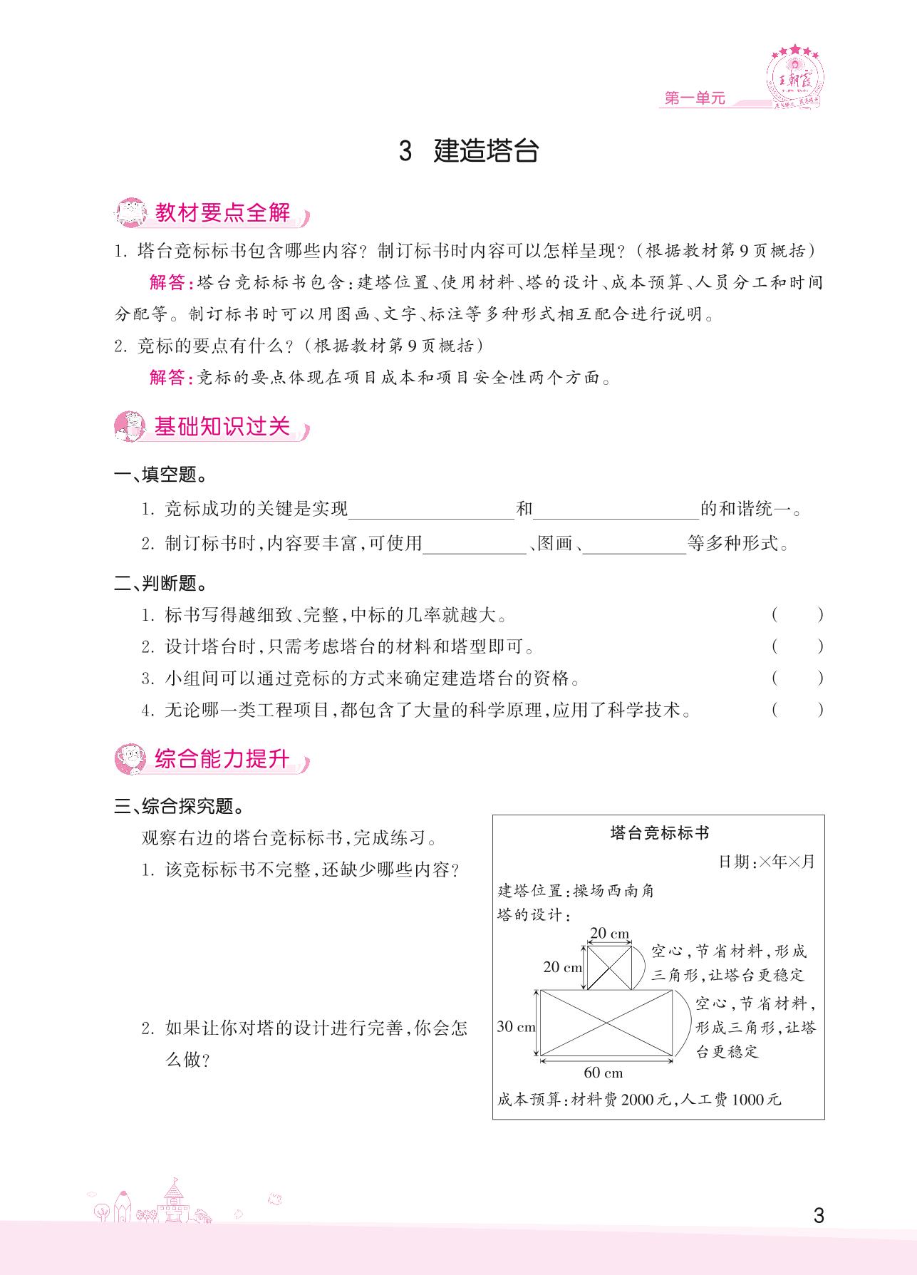 2022下册六年级科学教科版 第一单元——3 建造塔台