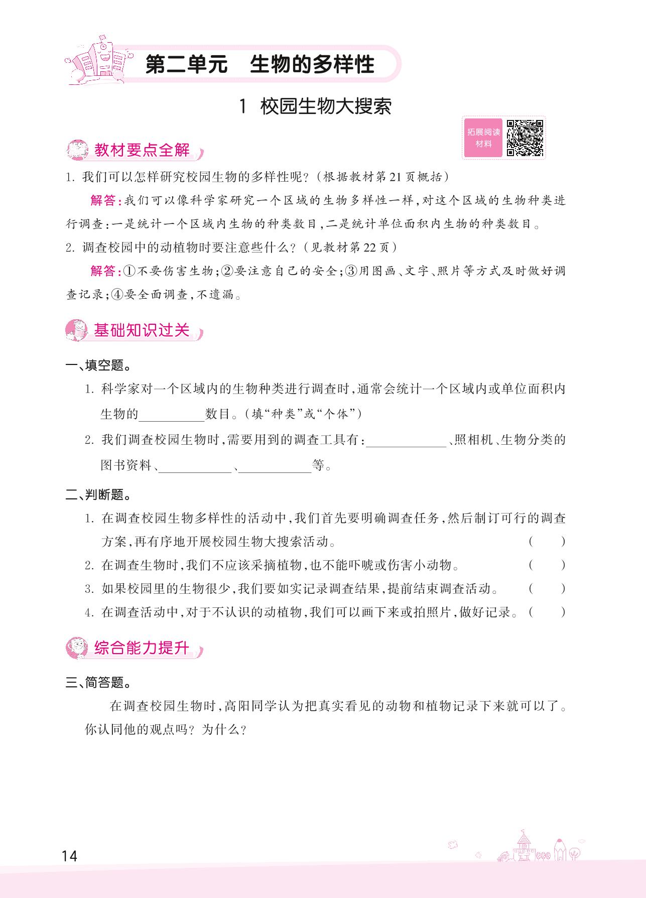 2022下册六年级科学教科版 第二单元——1 校园生物大搜索