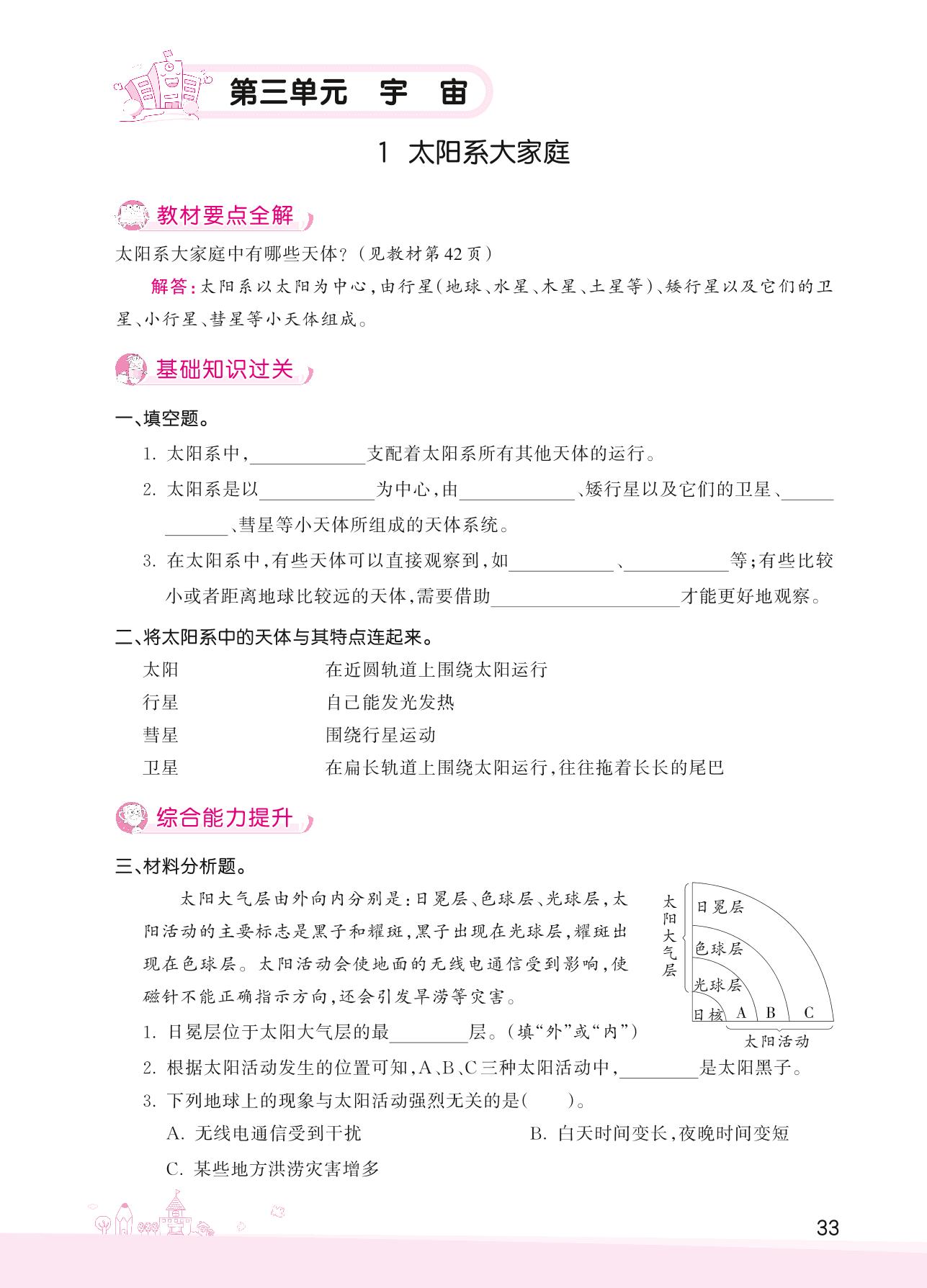 2022下册六年级科学教科版 第三单元——1 太阳系大家庭