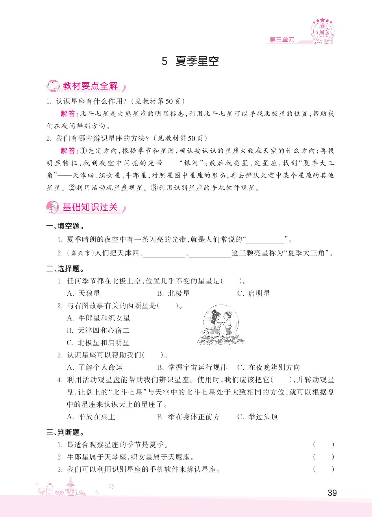 2022下册六年级科学教科版 第三单元——5 夏季星空
