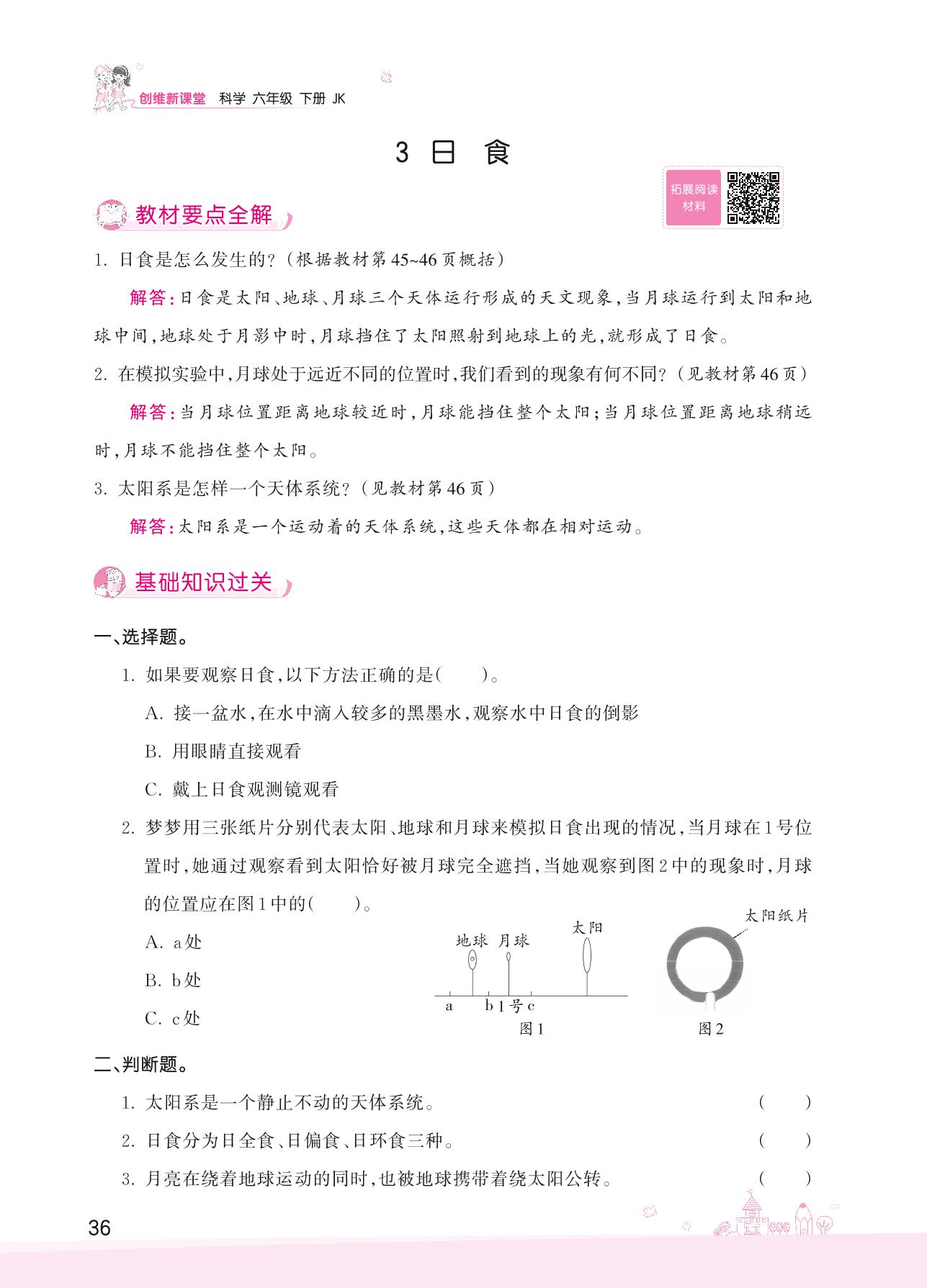 2022下册六年级科学教科版 第三单元——3 日食